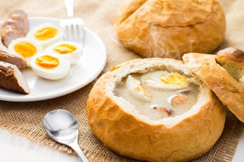 - Zurek: la zurek es una sopa bastante contundente, que se cocina con harina de centeno y que suele ir acompañada de salchicha, patatas, huevo cocido o legumbre. En algunos lugares, en vez de servirla en plato, se sirve en el interior de un pan de hogaza al que le han quitado la miga. Hay varios tipos de sopas a elegir, y calentita nos sentó de maravilla para combatir el frio.