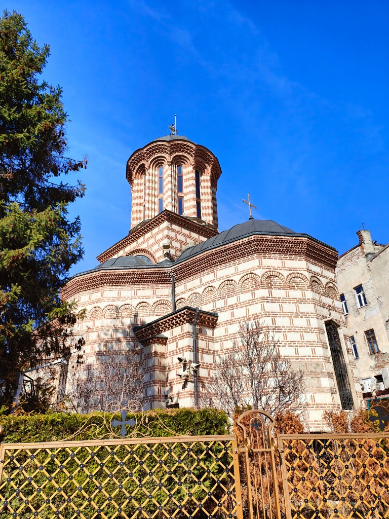 En esta ciudad estábamos teniendo la impresión de que se podía caminar tranquilamente dando un paseo, descubriendo nuevas calles sin rumbo y se veían un montón de cosas, íbamos con calma en nuestro día a día y no teníamos esa sensación de agobio que te puede dar en otros paises o ciudades de pensar que no te da tiempo a ver todo lo que tenias guardado en tu lista de «sitios a los que ir». De camino al hotel, vimos Curtea Veche, se trata de la primera corte real de la ciudad de Bucarest.