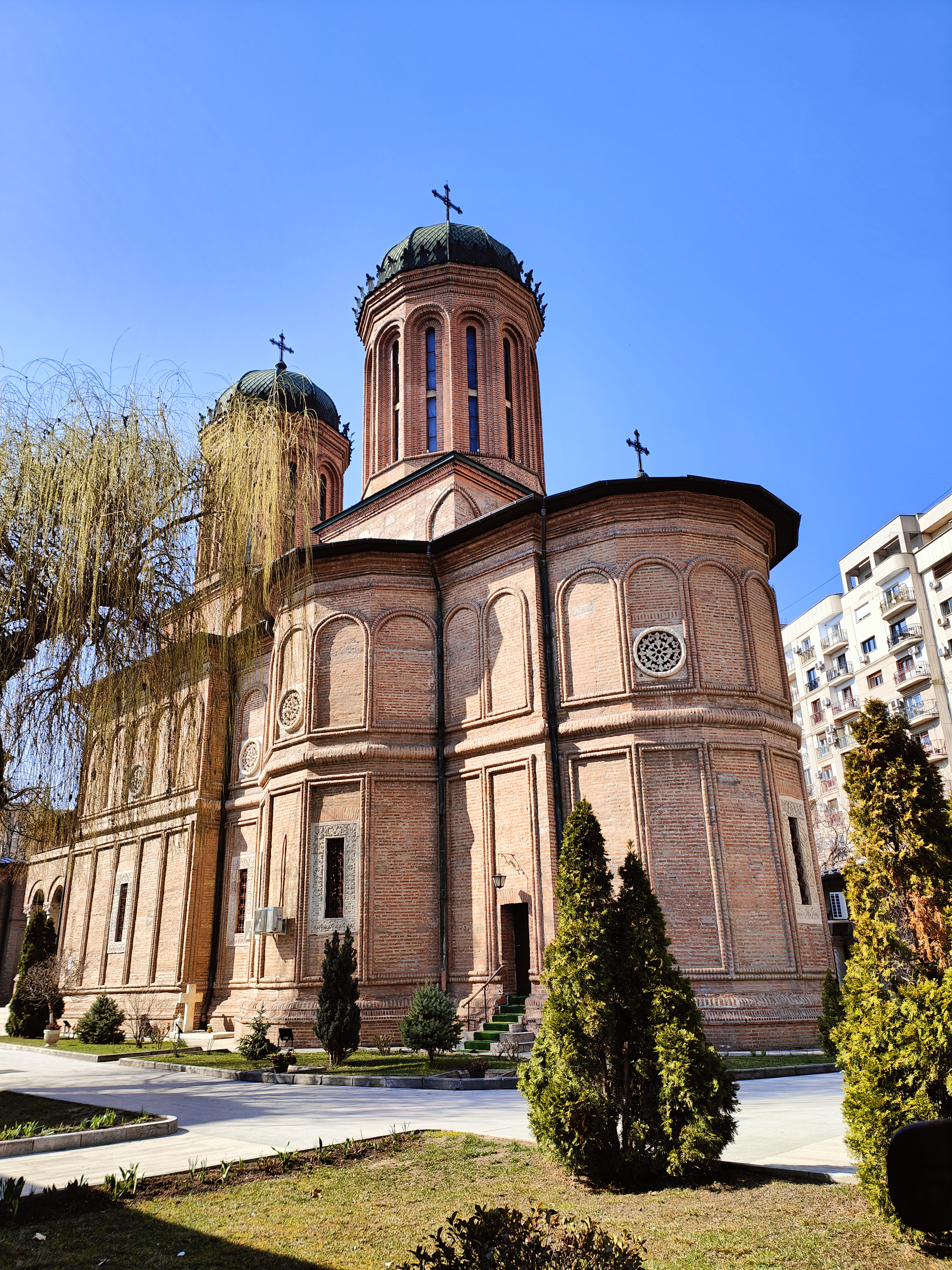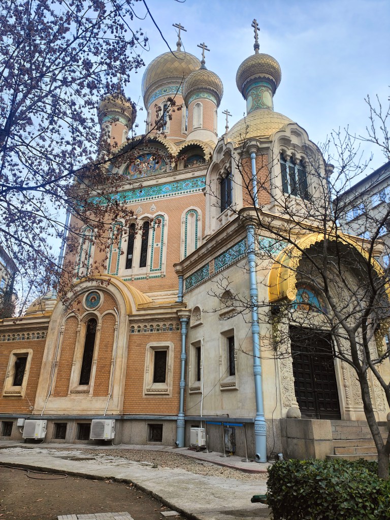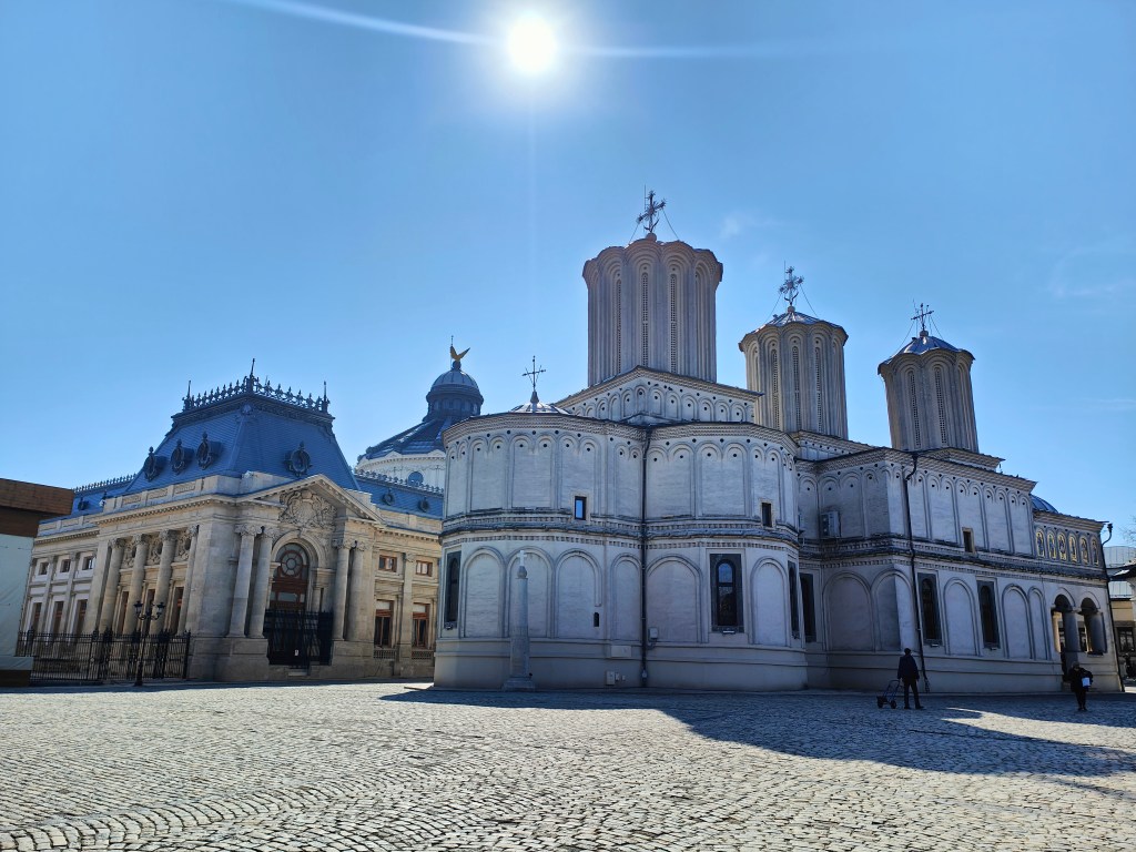 La última parada antes del almuerzo, la hicimos en la Catedral Patriarcal. Situada en la cima de la colina de Mitropoliei, en el centro de Bucarest, la Catedral Patriarcal (Iglesia Metropolitana) es el principal lugar de culto ortodoxo de la ciudad y un monumento histórico. Consagrado en 1658, es una copia del monasterio de Curtea de Arges en Pitesti dedicado a las santas Constantinas y Helenas.