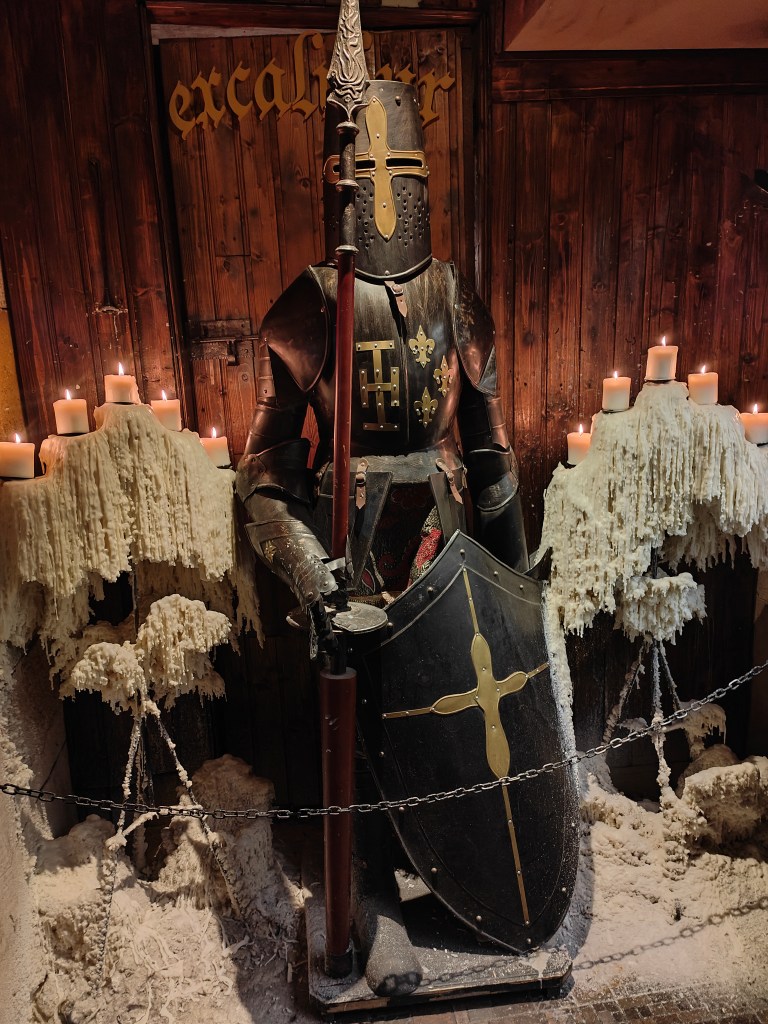 Nos sentamos en una cafetería a tomar un café y mas tarde fuimos a almorzar al restaurante Excalibur, teníamos reserva, es un restaurante con temática medieval en el que se come con las manos, no sirven cubiertos. La verdad que nos pareció super curioso y divertido, te ponen en la mesa un cuenco con agua y rodajas de limón para que cuando comas, te enjuagues las manos. Pedimos una bandeja de carne variada con patatas y ensalada para dos personas y era ENORMEE, nos sobró tanta comida que pedimos que nos la pusiera para llevar ya que no queríamos tirar comida.