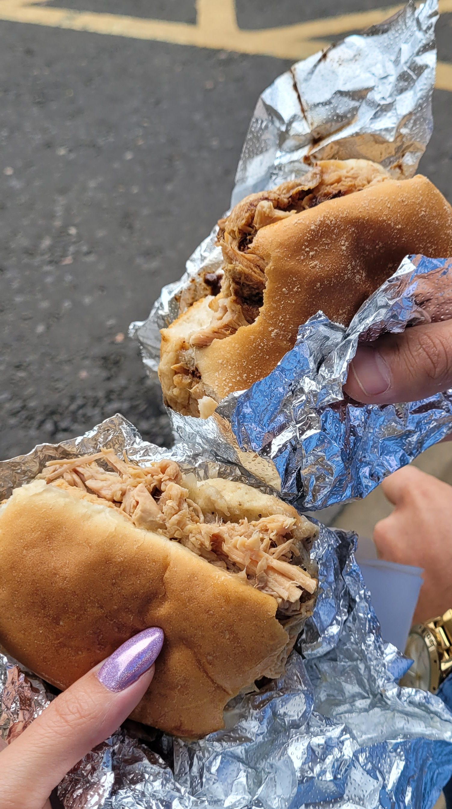Como ya era la hora de almorzar, decidimos comernos un bocadillo en un establecimiento que se encuentra en la calle Victoria Street que se llama OINK. Cada día empiezan a desmigar un cerdo y una vez que se haya vendido toda la carne, cierran. ¡No vayas muy tarde si no quieres quedarte sin comer! Lo puedes personalizar con varias salsas, tamaño e ingredientes. Estaba muy rico y nos lo pusieron para llevar. Nos sentamos en los alrededores a comer tranquilamente.