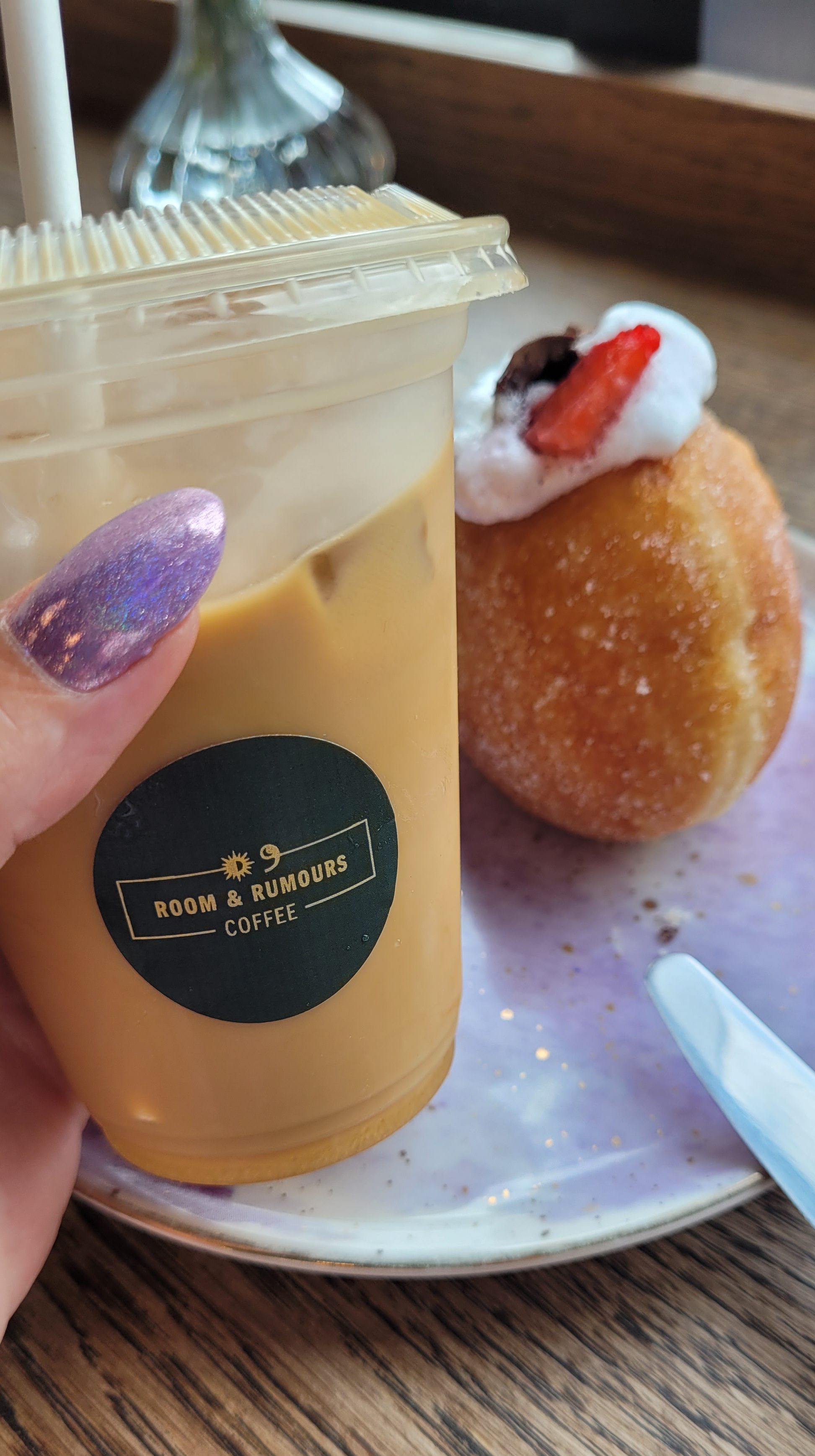 Una vez terminamos, fuimos a merendar, y fuimos a Room Rumous Coffee, tienen como especialidad unas berlinas rellenas de varios sabores. Estaba muy rico.
