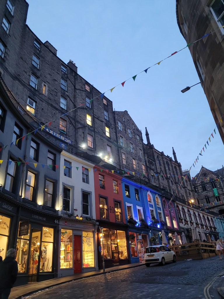 Bajamos a Victoria Street, una de las calles mas pintorescas y bonitas de Edimburgo, se dice que la autora de Harry Potter se inspiró en esta calle para crear el famoso Callejón Diagón. ¿Tú que crees?