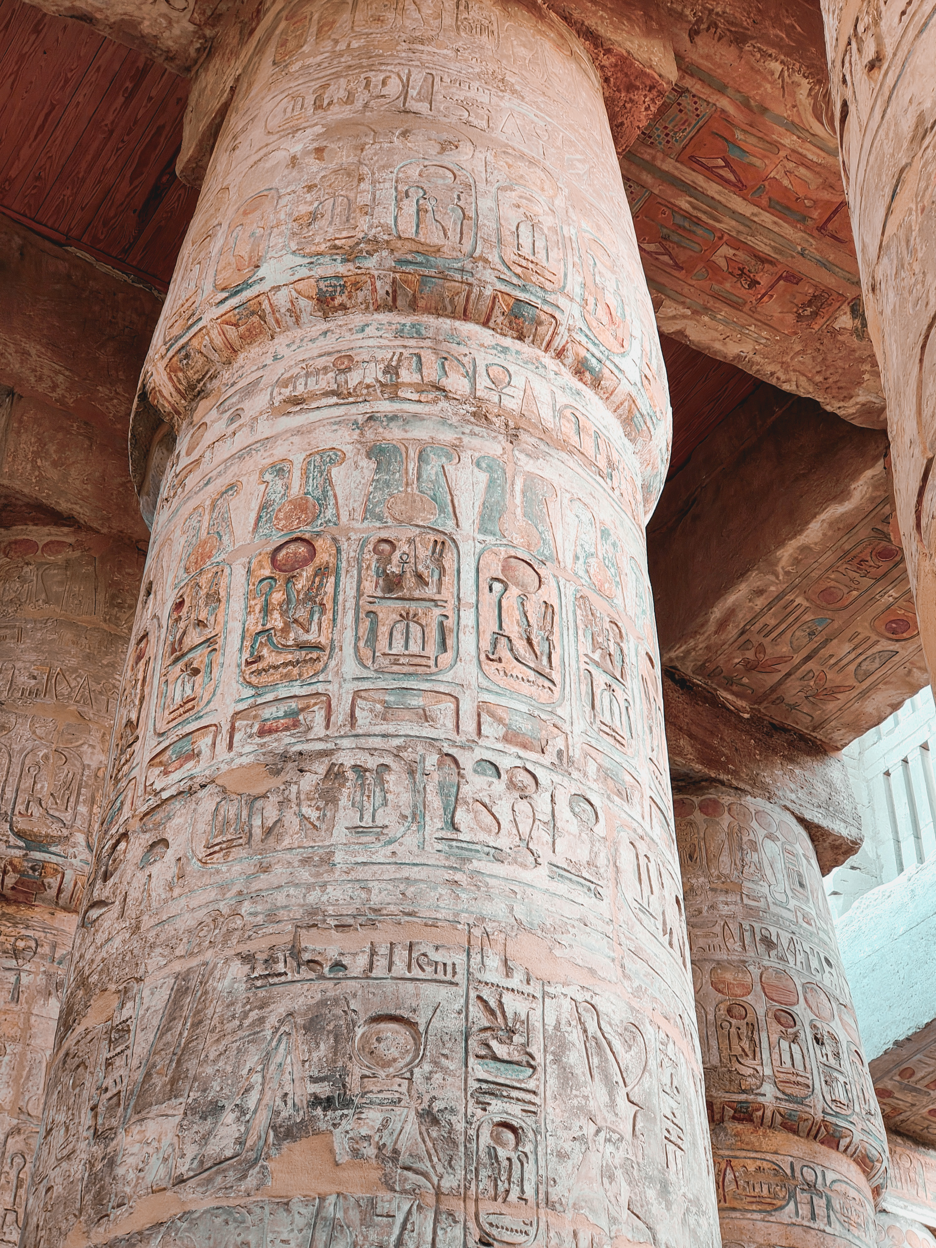 Este templo lo hizo el faraón Seti I y Ramsés II, en la entrada de dicho templo, dos colosos de Ramsés II con la corona del alto y bajo Egipto nos recibieron junto con un obelisco con la vida del faraón, antiguamente había otro obelisco gemelo, el cual a día de hoy se encuentra en la plaza de la Concordia en París.