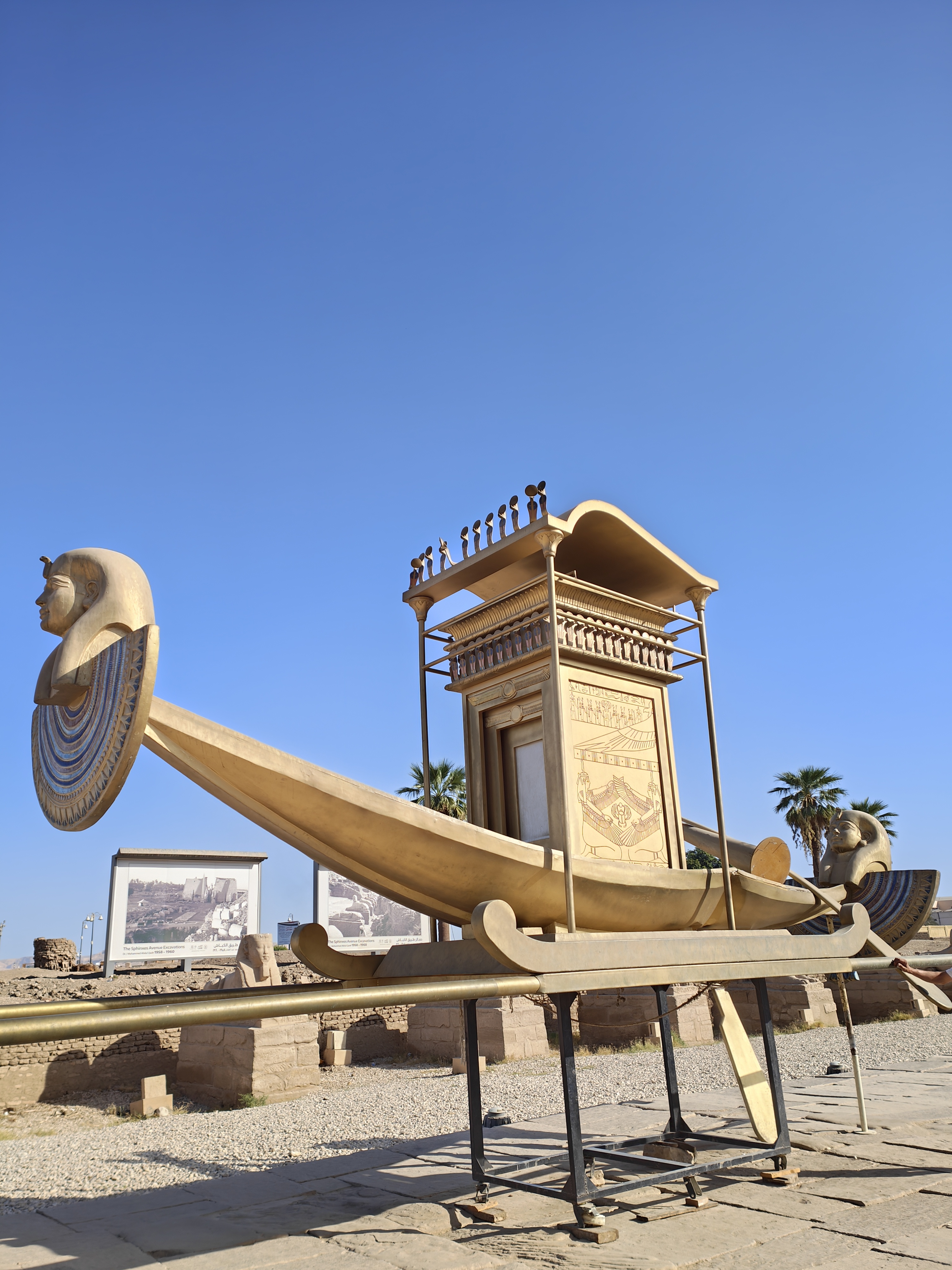 Antiguamente, cuando hacían celebraciones, iban por este paseo de esfinges portando a hombros la barca ceremonial. Las barcas se usaban en celebraciones religiosas propias de cada deidad y las llevaban a hombros en procesión los sacerdotes del templo, como en la ceremonia del Opet.