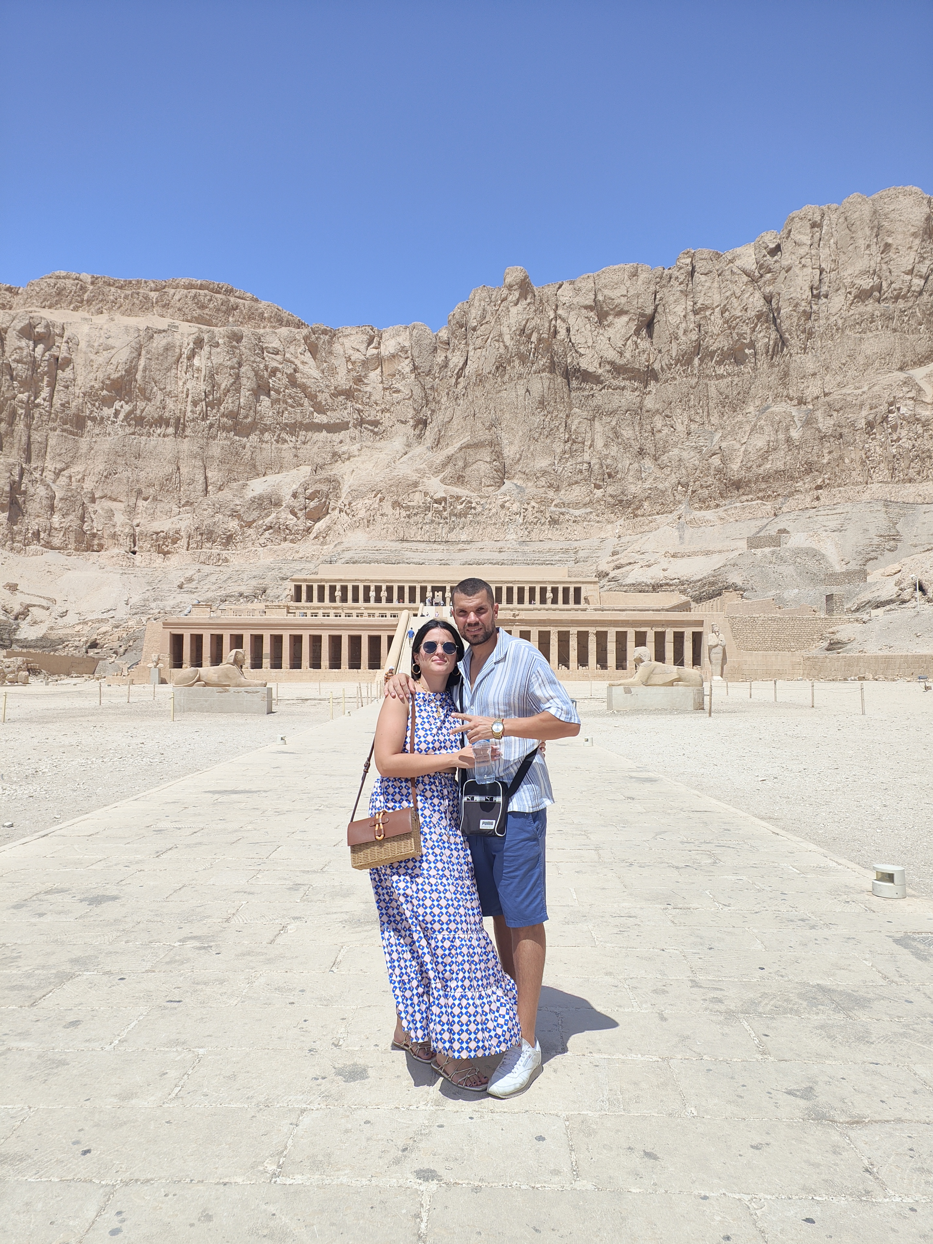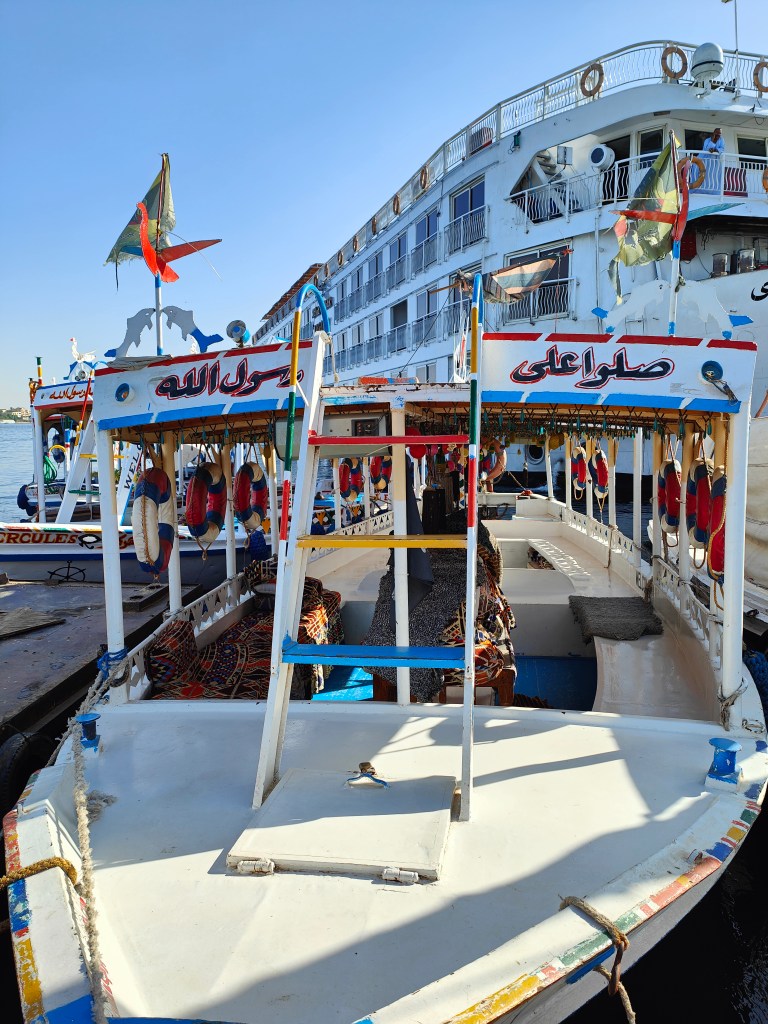 Después de estos consejos, os voy a contar nuestra experiencia. En primer lugar nosotros viajamos en Septiembre, salimos en un vuelo chárter desde Madrid dirección Luxor y volamos con la compañía aérea red sea. Ya en el aeropuerto de Madrid, mientras que hacíamos la facturación, salió en las pantallas que teníamos un retraso en nuestro vuelo. Tendríamos que haber salido a las 16.40h de la tarde y misteriosamente se atrasó hasta las 20.15h, nos dieron muy pocas explicaciones desde la compañía, por fin montamos en el avión y también tuvimos problemas con los asientos, nos asignaron unos y los tripulantes nos dijeron que nos teníamos que cambiar de sitio, yendo 5 horas de vuelo separados en varias filas y asientos diferentes de nuestros acompañantes, nos negamos a cambiarnos de asiento, obligando a otros pasajeros a tener que moverse diciéndonos que si no nos movíamos no salía el avión. Al final salió el vuelo a las 22.30h de la noche llegando a Luxor a las 4.30h de la mañana, nos tramitaron el visado, nos recogieron en el bus que nos llevaría al barco y llegamos al barco a las 5.20h de la mañana habiendo perdido la cena del día anterior, la pernocta y el desayuno. Nuestra sorpresa fue que cuando llegamos al barco ya estaba todo el grupo esperando para irse de excursión al primer templo del día. Nuestro guía nos dio unos 20 minutos de margen para que nos cambiásemos de ropa y saliésemos a ver las maravillas de este país.