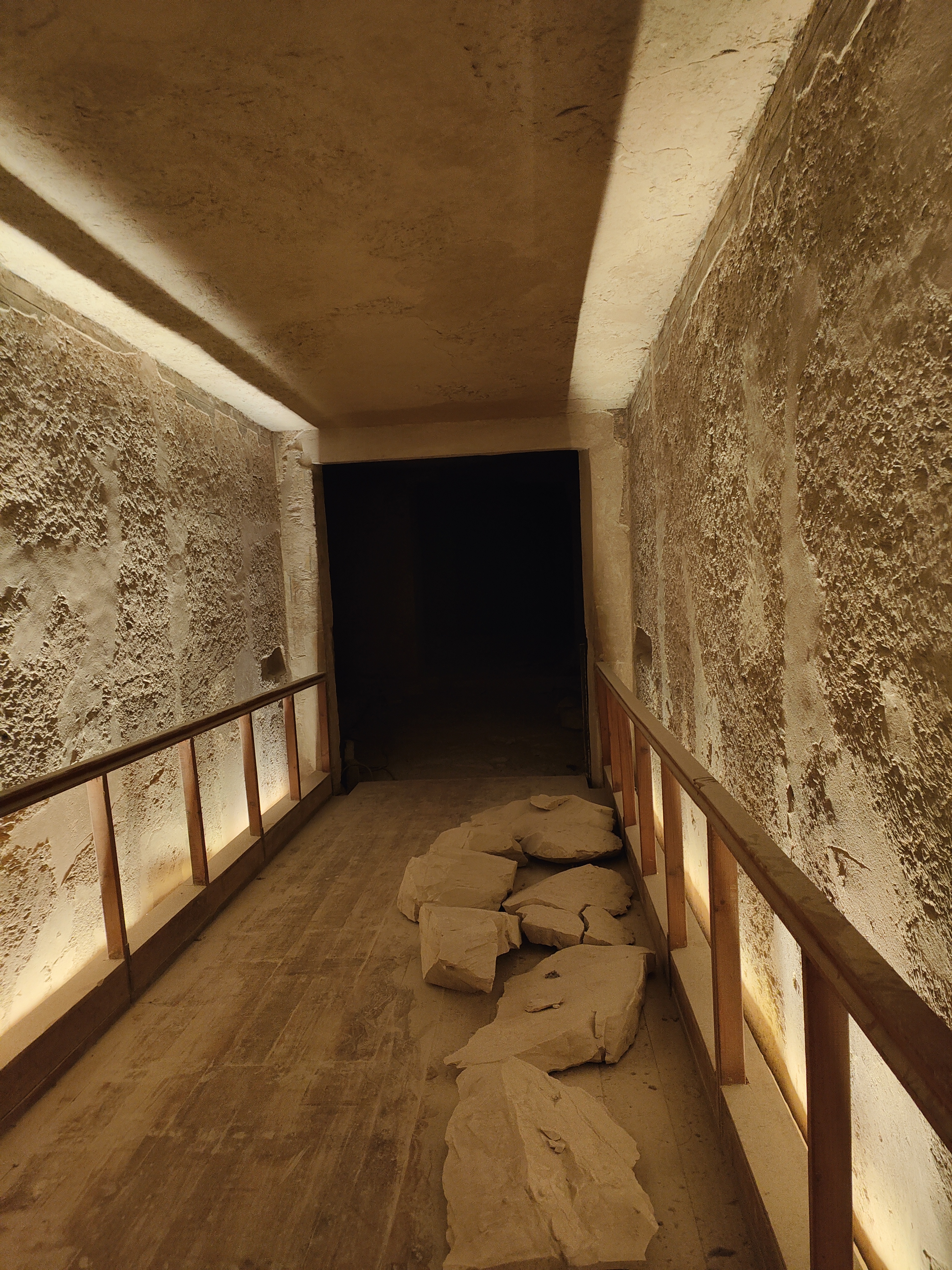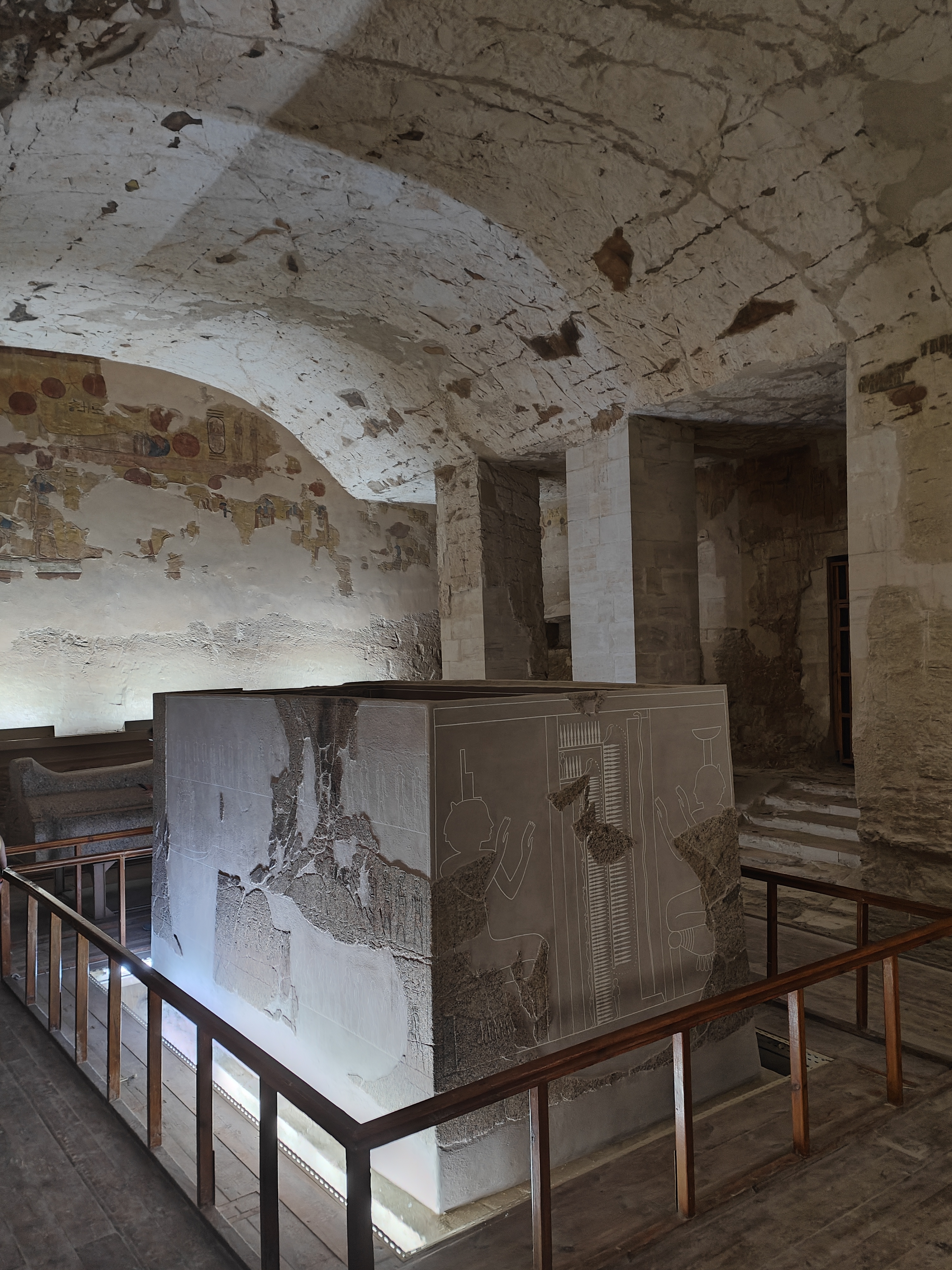 Al llegar al final de su tumba, pudimos ver su sarcófago de piedra donde estuvo la momia.
