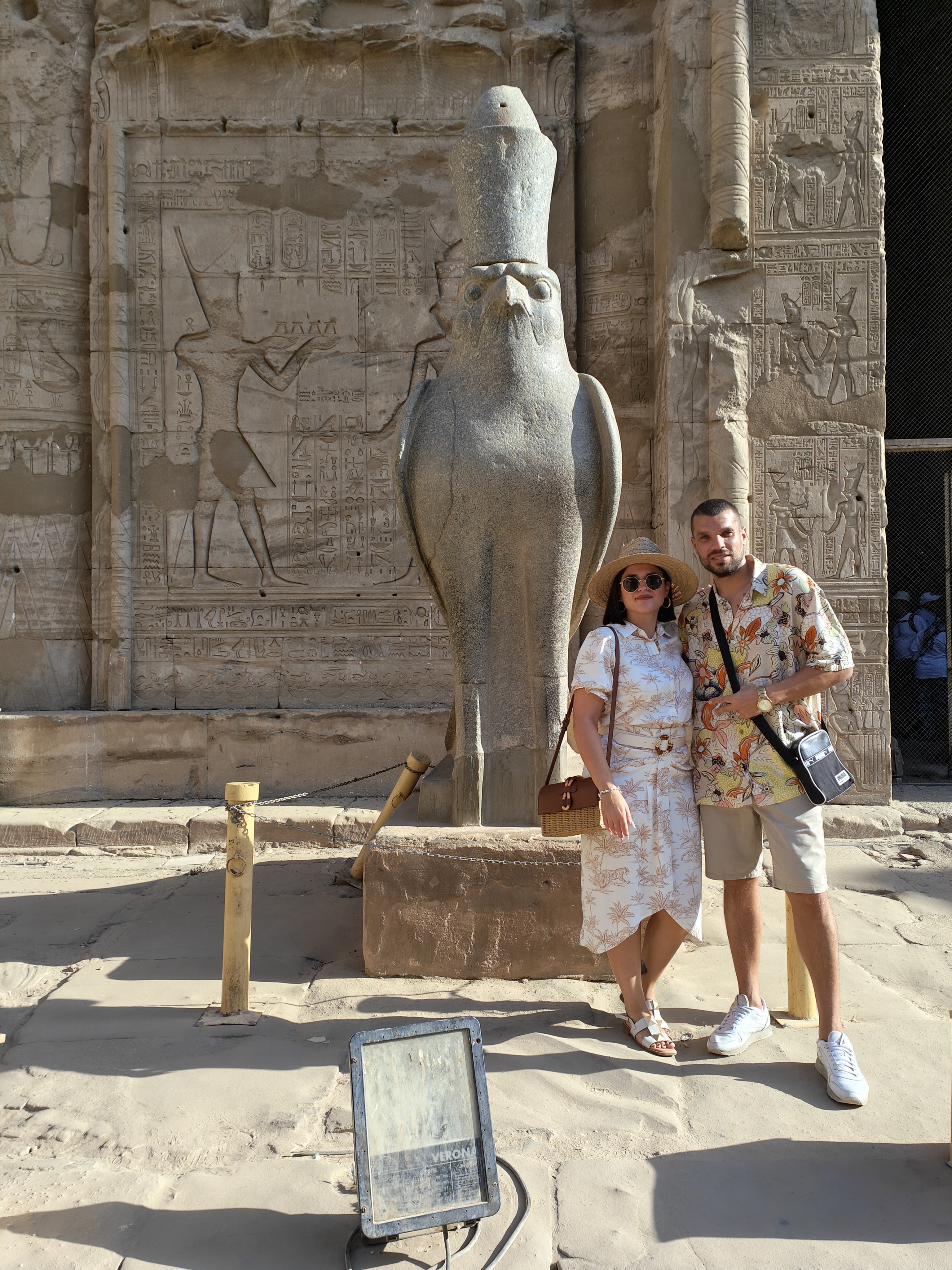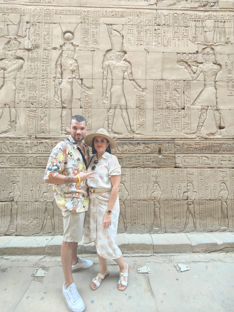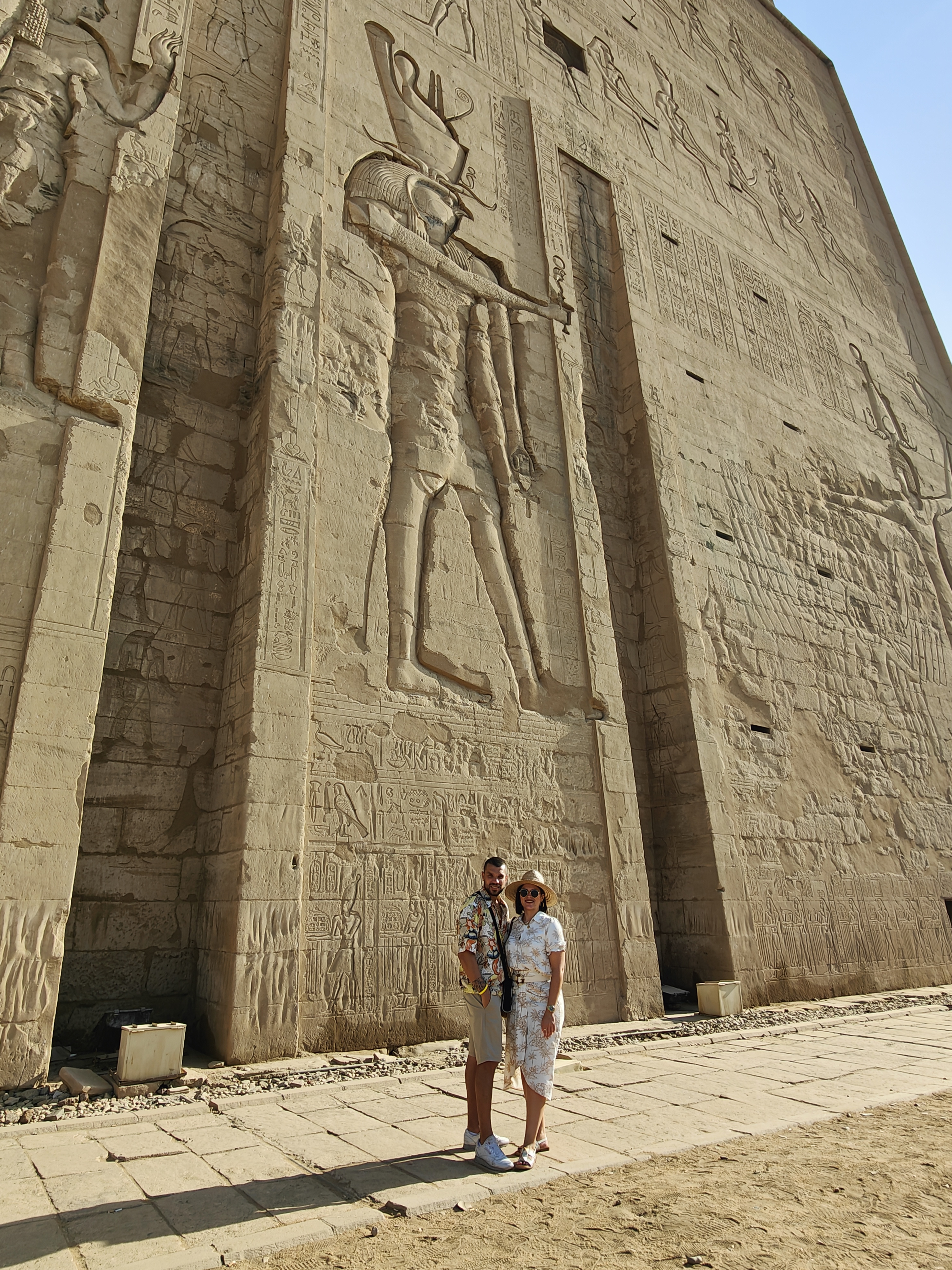 Una vez terminamos de ver el templo, nos volvimos al barco, y nos relajamos un ratito en la cubierta dandonos un baño en la piscina para soportar el calor del día. Congeniamos muy bien con varias parejas de nuestro grupo y nos fuimos conociendo poco a poco. El barco seguía navengando hacia la siguiente parada, la cual veriamos por la tarde. Nos fuimos a almorzar al restaurante y después de comer, nos fuimos al siguiente templo en el itinerario de hoy. El templo de Kom Ombo.