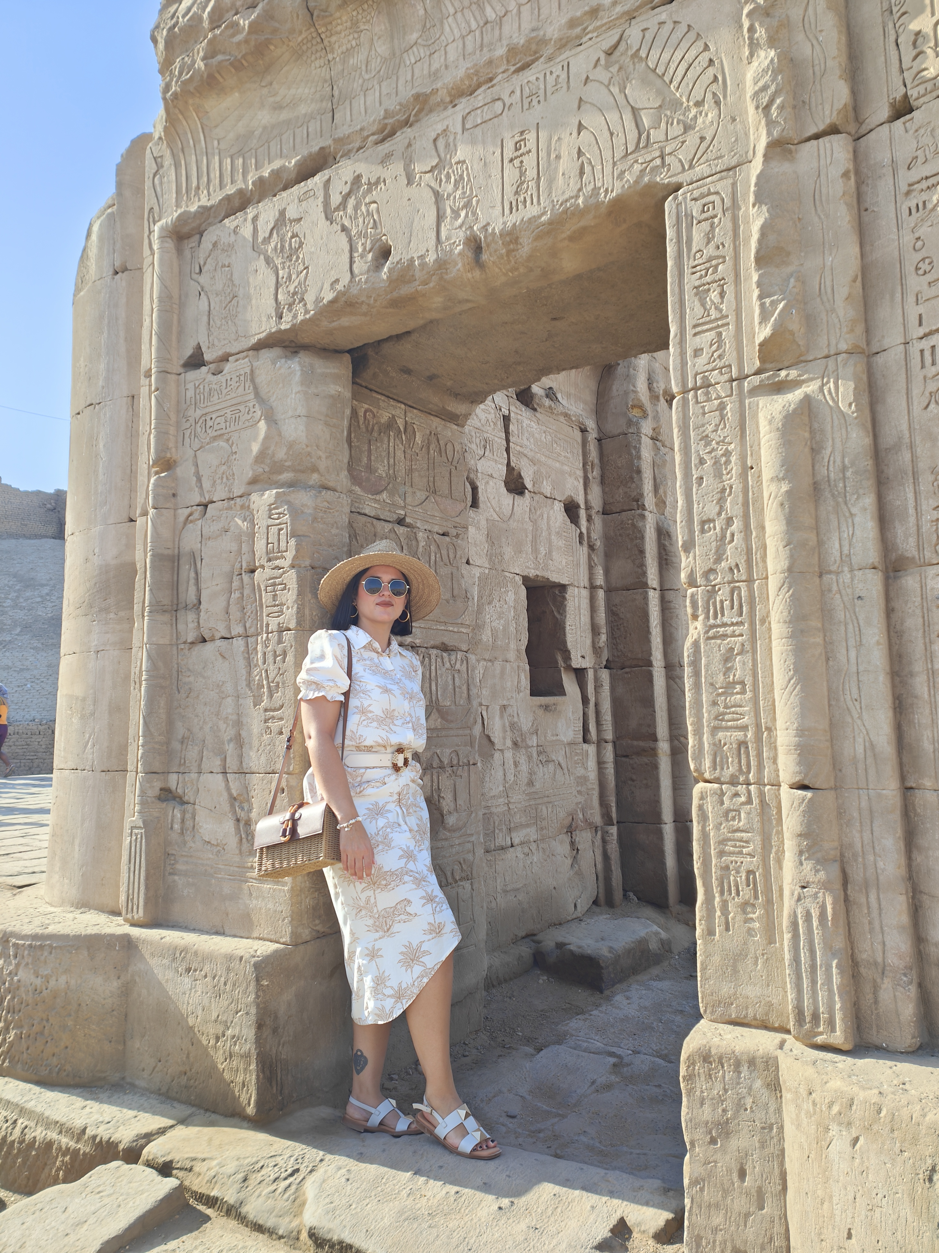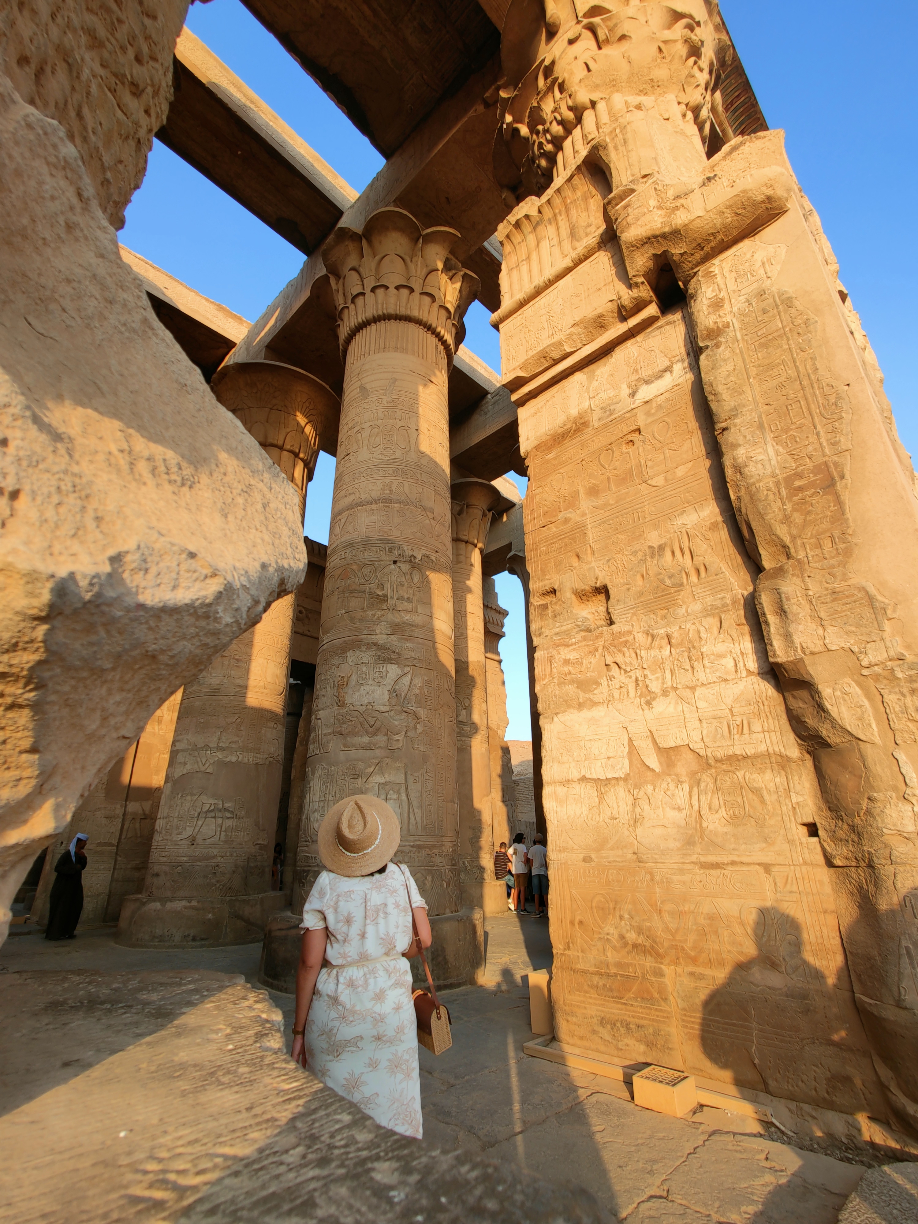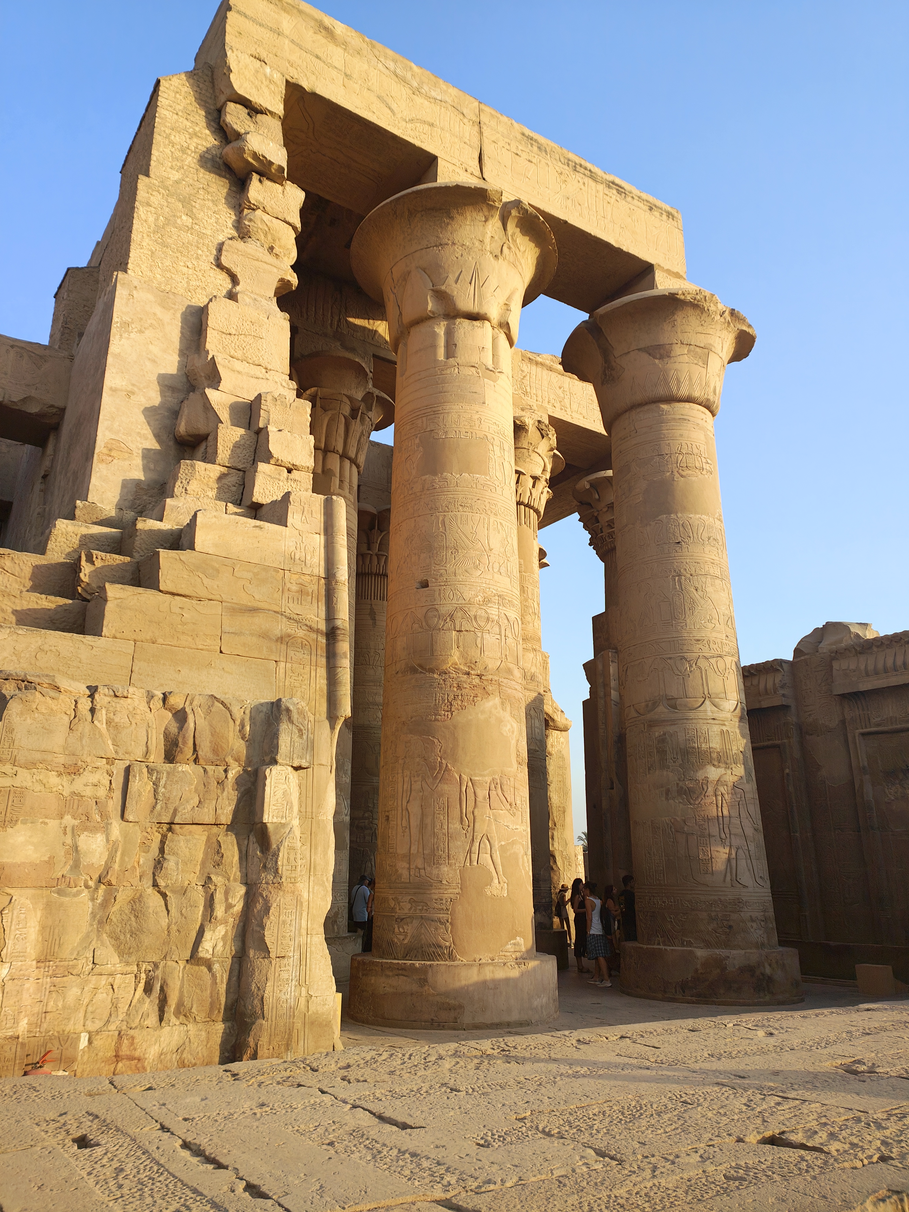 Una vez terminamos de ver el templo, nos volvimos al barco, y nos relajamos un ratito en la cubierta dandonos un baño en la piscina para soportar el calor del día. Congeniamos muy bien con varias parejas de nuestro grupo y nos fuimos conociendo poco a poco. El barco seguía navengando hacia la siguiente parada, la cual veriamos por la tarde. Nos fuimos a almorzar al restaurante y después de comer, nos fuimos al siguiente templo en el itinerario de hoy. El templo de Kom Ombo.