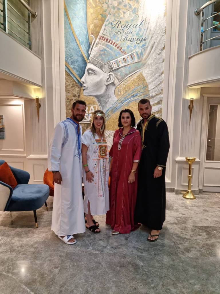 Nos vestimos todos con nuestras mejores galas egipcias, cenamos y nos fuimos a la zona de discoteca del barco donde sonó música típica egipcia, bailamos con los trabajadores del barco que animaban la fiesta y nos lo pasamos genial. ¡menuda marcha tienen!