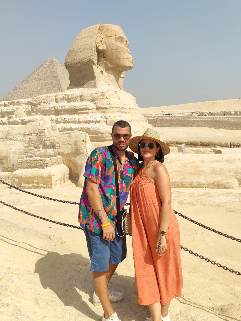 Nos levantamos sobre las 5 de la mañana, pusimos rumbo al restaurante del hotel para desayunar y así coger fuerzas para este magnífico día. Una vez terminamos, nos recogieron a las 7:15 de la mañana en bus, nos volvimos a reencontrar con todo nuestro grupo, ya que cada uno teníamos hoteles diferentes, pero hasta que no finalizase toda la ruta por Egipto, estaríamos todos juntos, incluido nuestro guía Micheal. Pusimos rumbo a las tan esperadas PIRAMIDES DE GIZA.