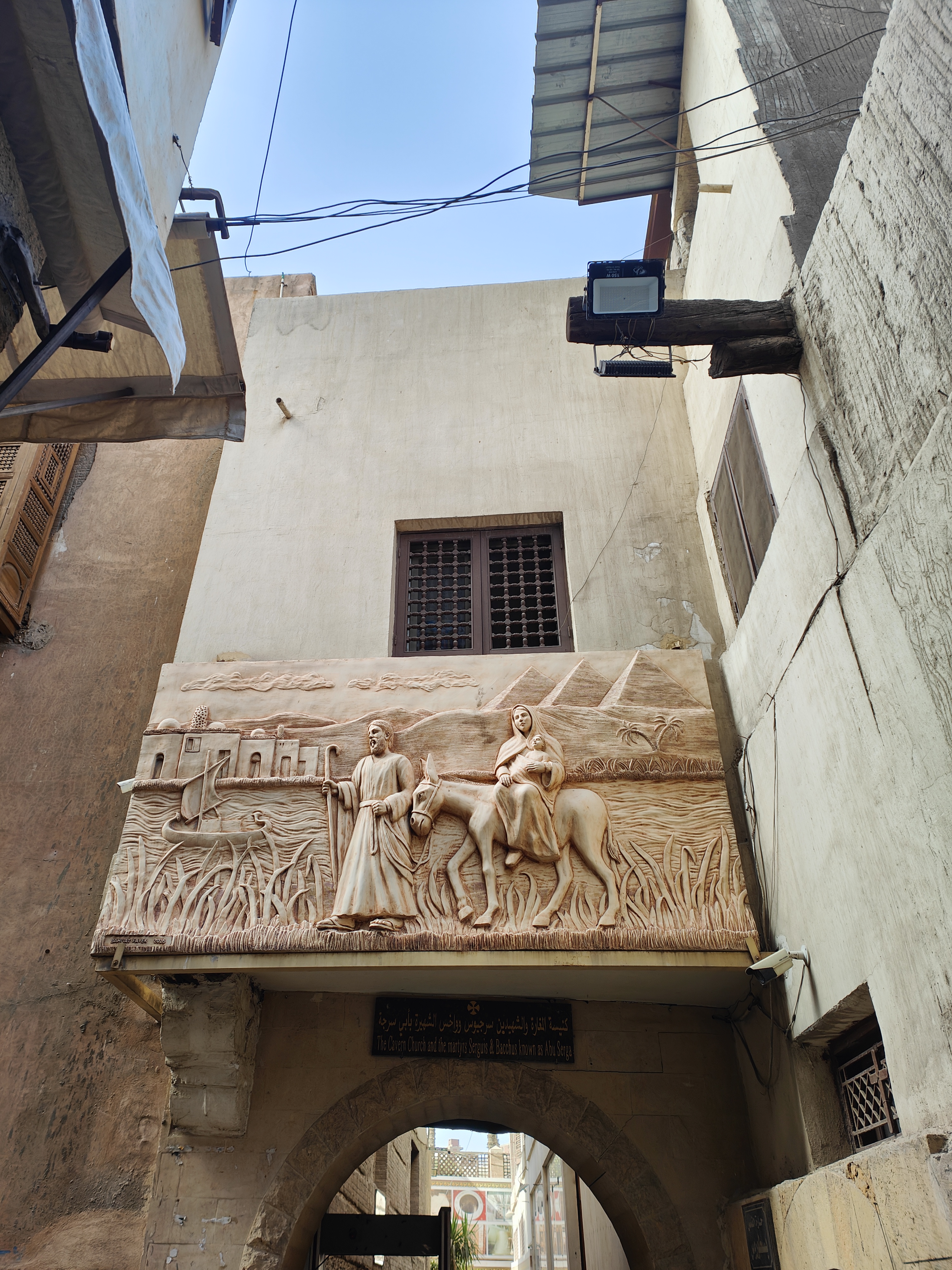 Es la iglesia copta más famosa del Cairo, el nombre de iglesia colgante le viene por estar situada sobre una de las puertas de la fortaleza de Babilonia, una fortaleza romana.