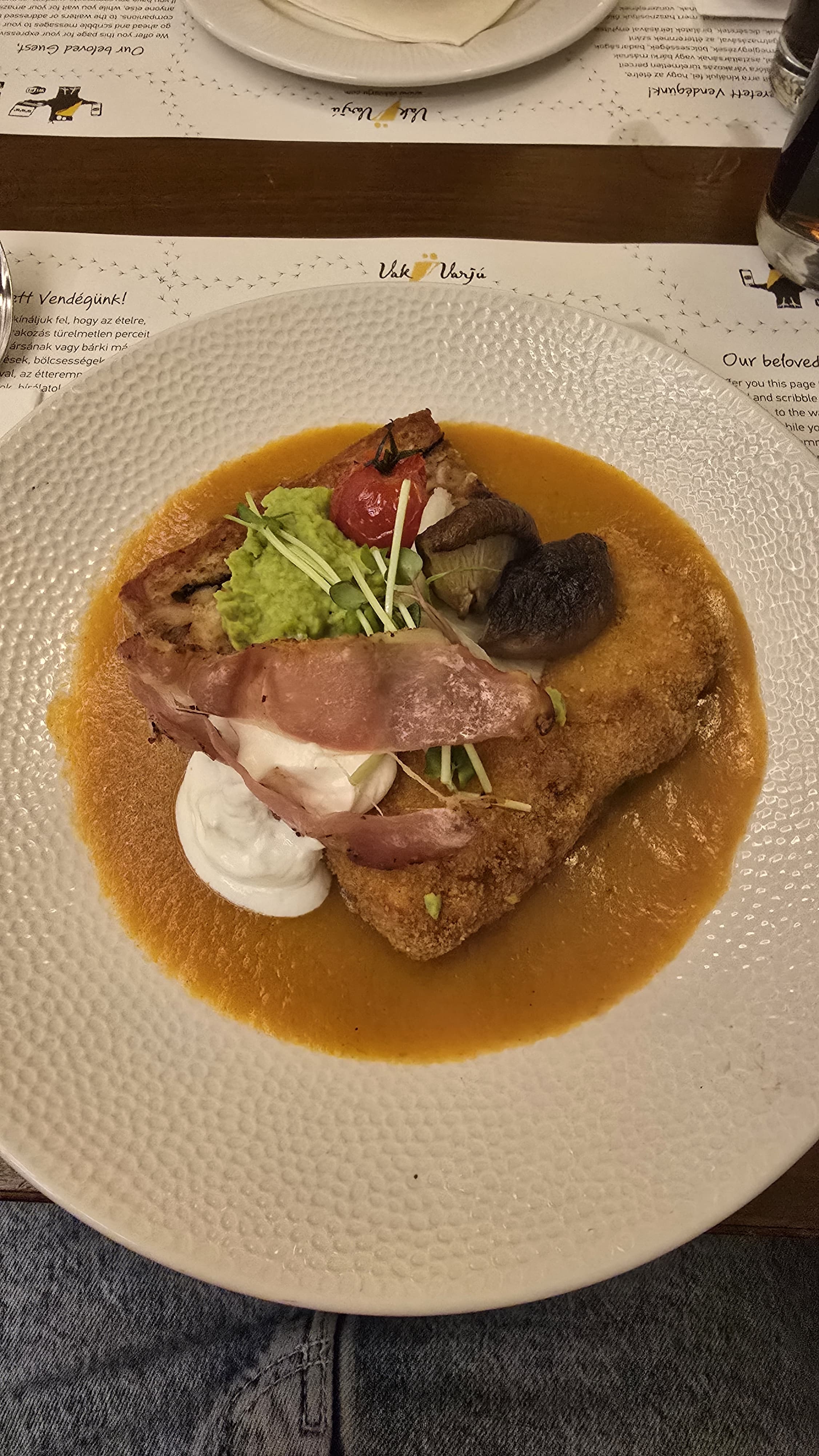 Para la hora de comer también teníamos una reserva en un restaurante, se llama Vakvarju, nos pedimos el famoso goulash y un pollo estilo bakony con setas sitake. La comida estaba riquísima.