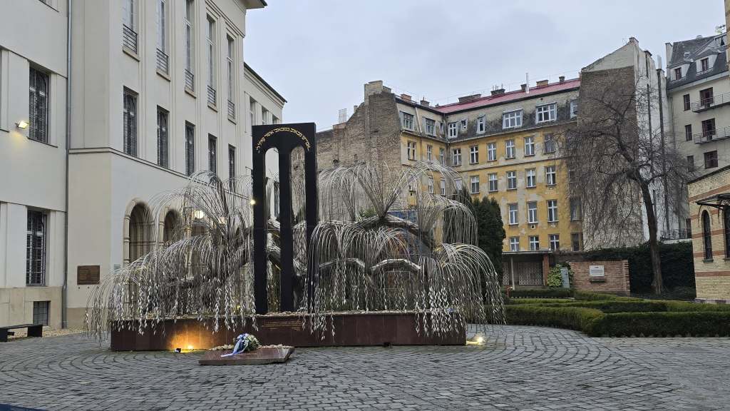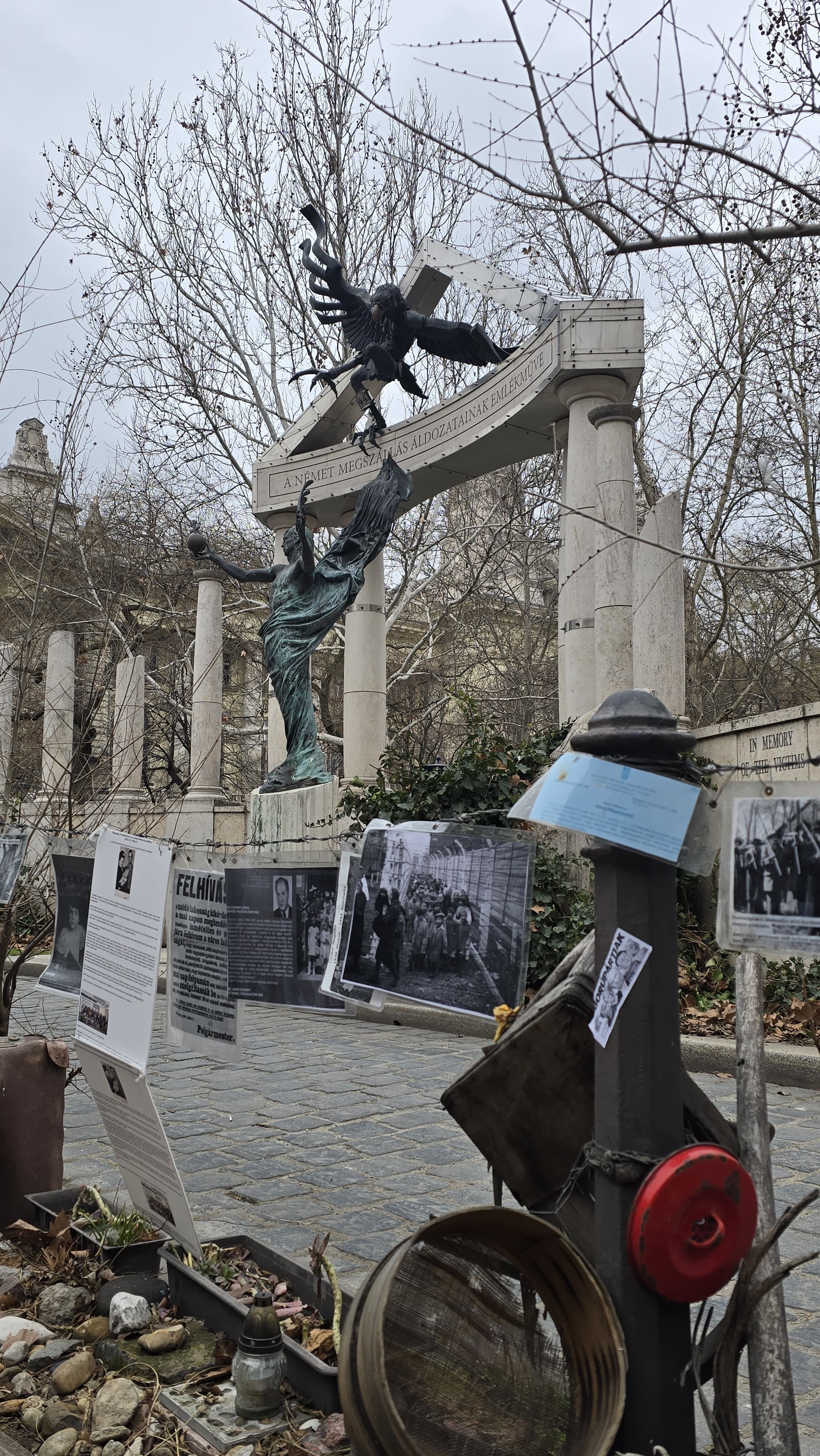 En la parte posterior tiene un cementerio judío. Debido a que la sinagoga era parte del gueto judío, el complejo tuvo que dar refugio a parte de la comunidad judía que no tenía hogar en el interior del gueto, muriendo mas de 2000 personas y siendo enterradas ahí. También vimos el árbol de la vida o también conocido como memorial a los mártires judíos húngaros, ya que al menos 400.000 judíos húngaros fueron asesinados por los nazis, el árbol se asemeja a un sauce llorón, en cuyas hojas hay inscripciones con los nombres de algunas victimas.