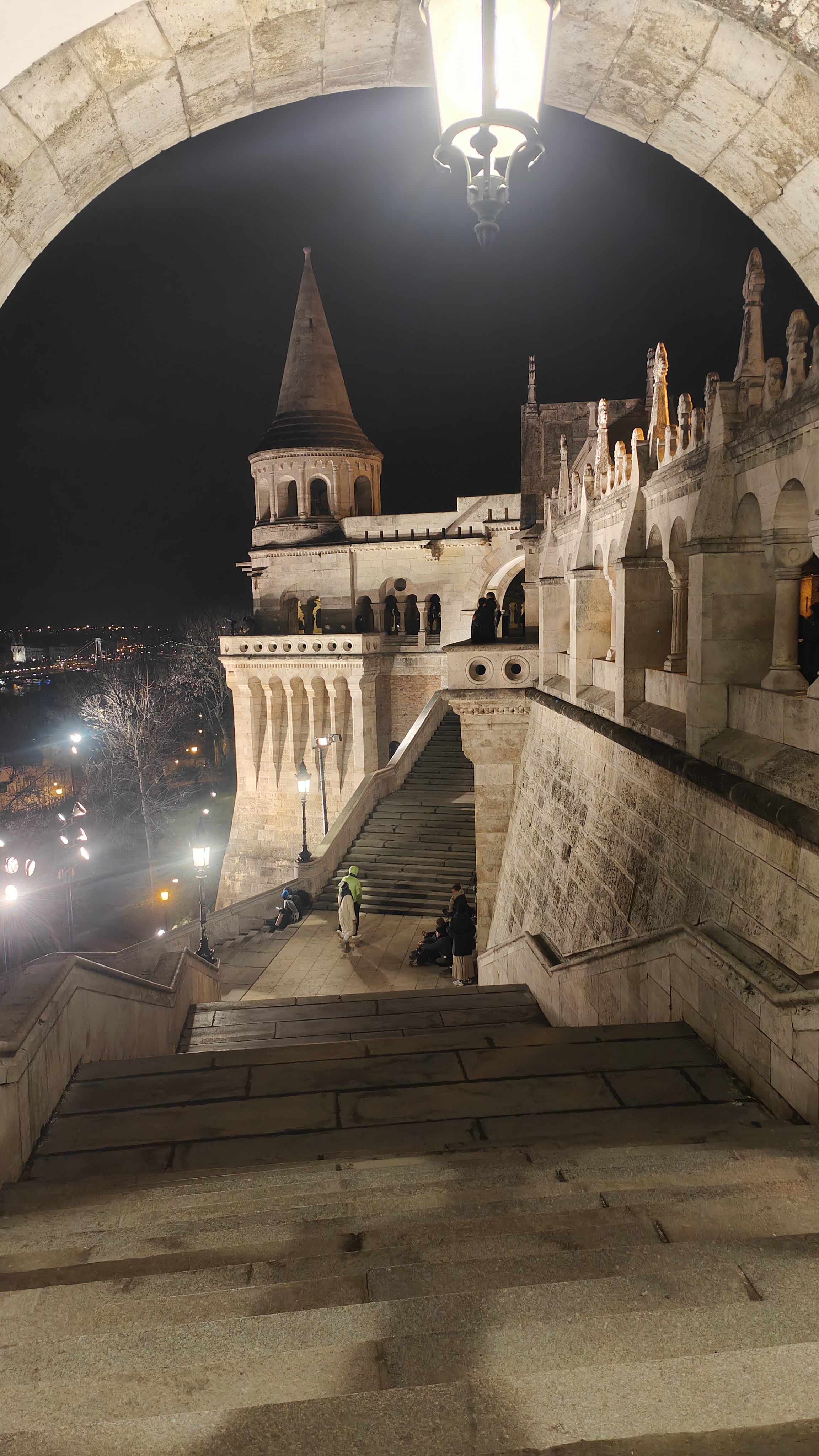 Ya que teníamos la tarde libre y el guía nos había recomendado ver el bastión de los pescadores de noche con muy poca gente, pusimos rumbo allí. El paseo desde la ópera fue largo, pero nos encantó perdernos por las calles de esta bonita ciudad, cruzar el Danubio por uno de sus puentes y subir hasta el bastión de los pescadores de noche. No había tanta aglomeración de personas y pudimos disfrutar tanto de las vistas como del bastión para nosotros solos. Echamos unas fotos espectaculares.