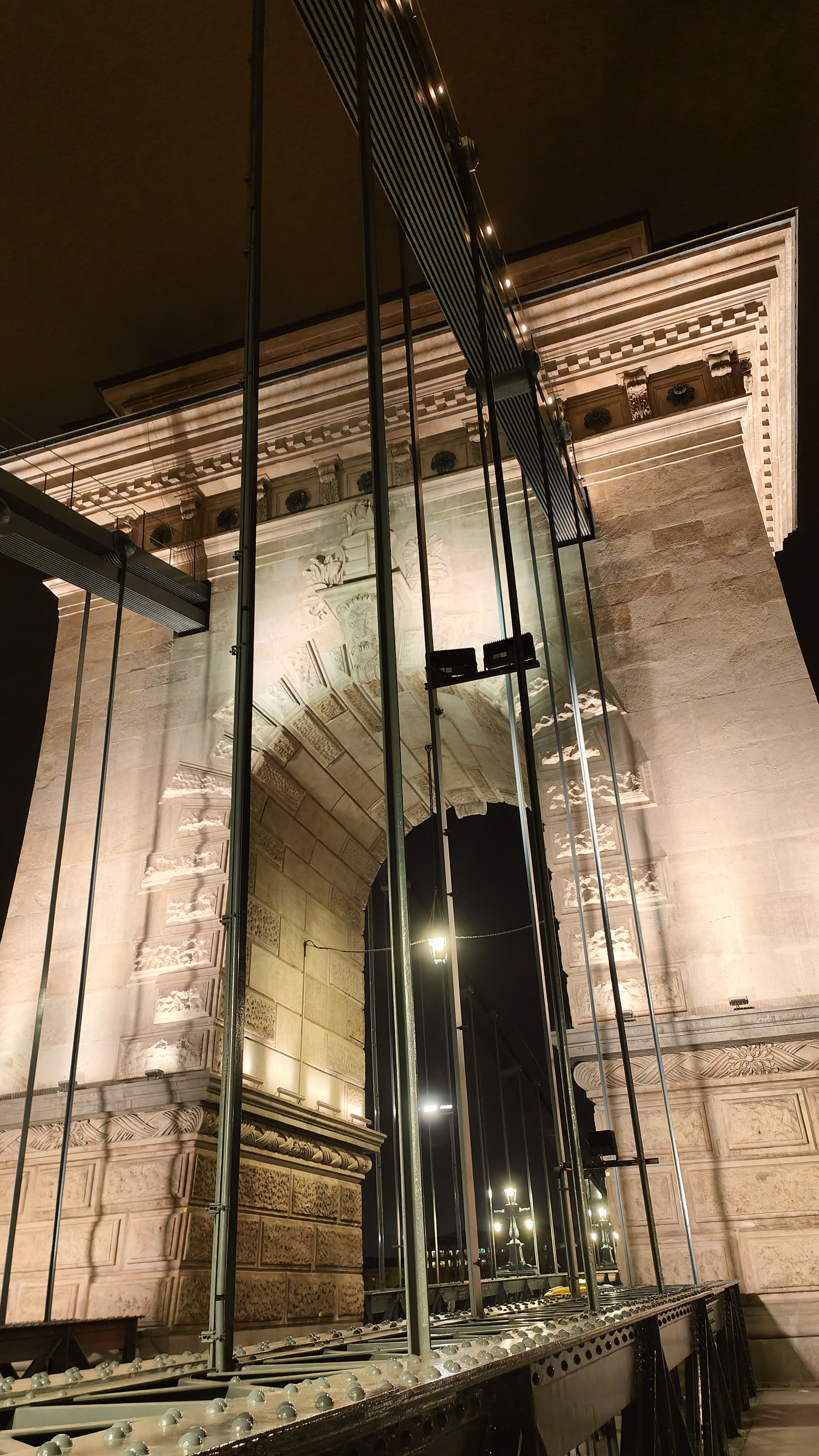 El puente de las cadenas es el más antiguo de los puentes que unen las ciudades de Buda y Pest. Su vano central tiene 202 metros, uno de los más largos del mundo cuando fue inaugurado en 1849. Este puente es el símbolo de Budapest y también el primer puente permanente en el tramo húngaro del río Danubio y el segundo en el curso total del rio. Ha sido representado en muchos billetes y monedas húngaros.