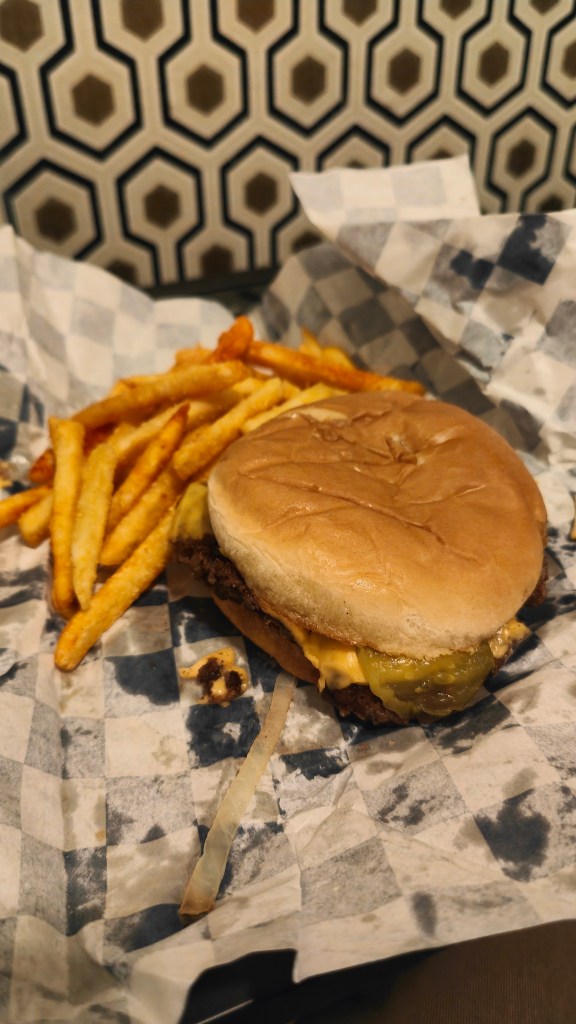 Después de volver de nuevo a la zona de Pest, nos ibamos quedando maravillados con lo preciosa que es esta ciudad por la noche, tiene una iluminación muy bonita y hace que todos sus edificios y monumentos se vean mágicos. Fuimos a buscar algo para cenar a un sitio que nos salia mucho en redes sociales. El sitio es un local de hamburguesas que se llama SMASHY, solo hay dos tipos de hamburguesas a elegir, el precio está muy bien y la comida estaba muy rica. La compramos para llevar, ya que el local solo tiene una pequeña barra y nos la comimos en nuestro hotel.