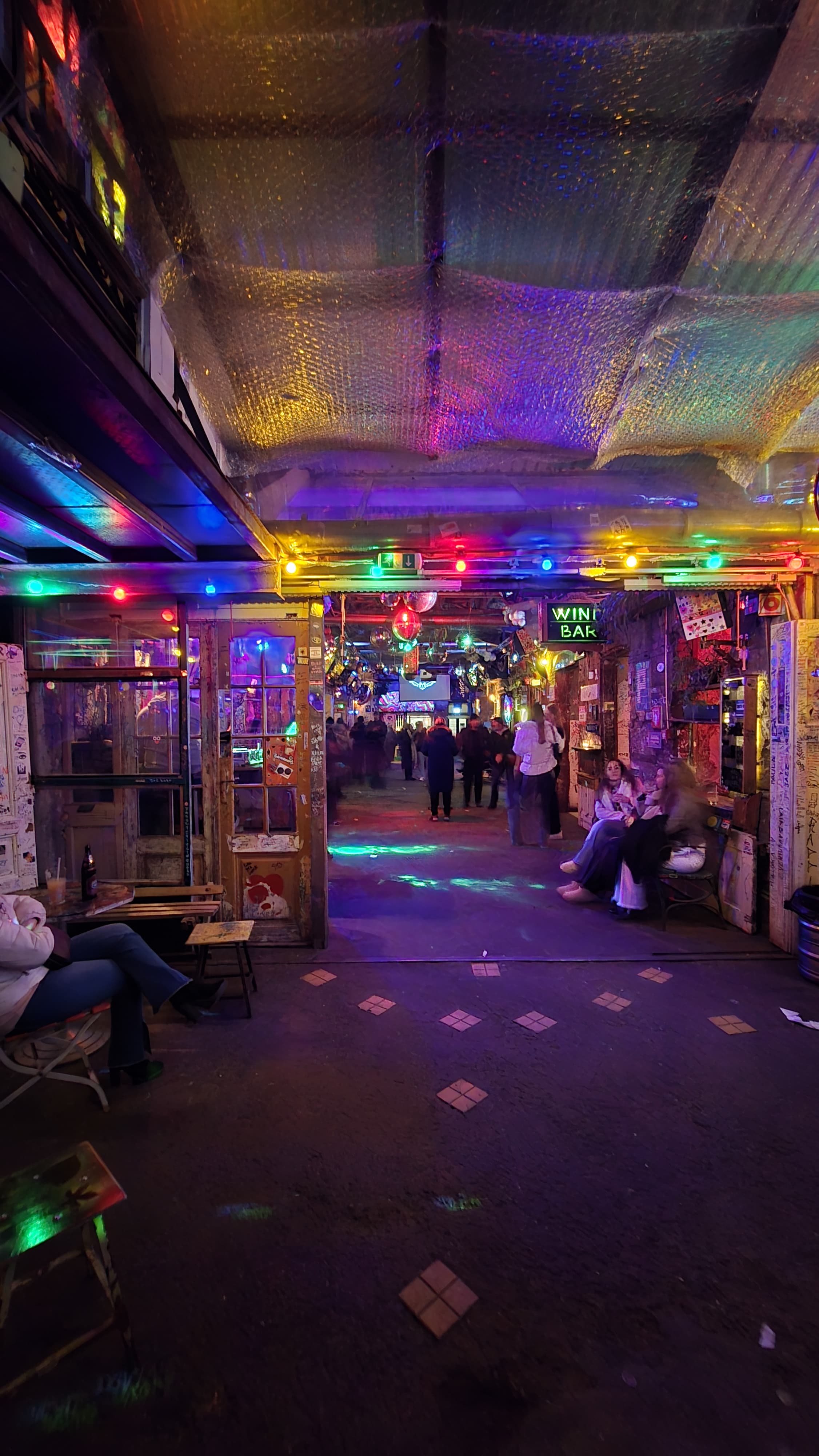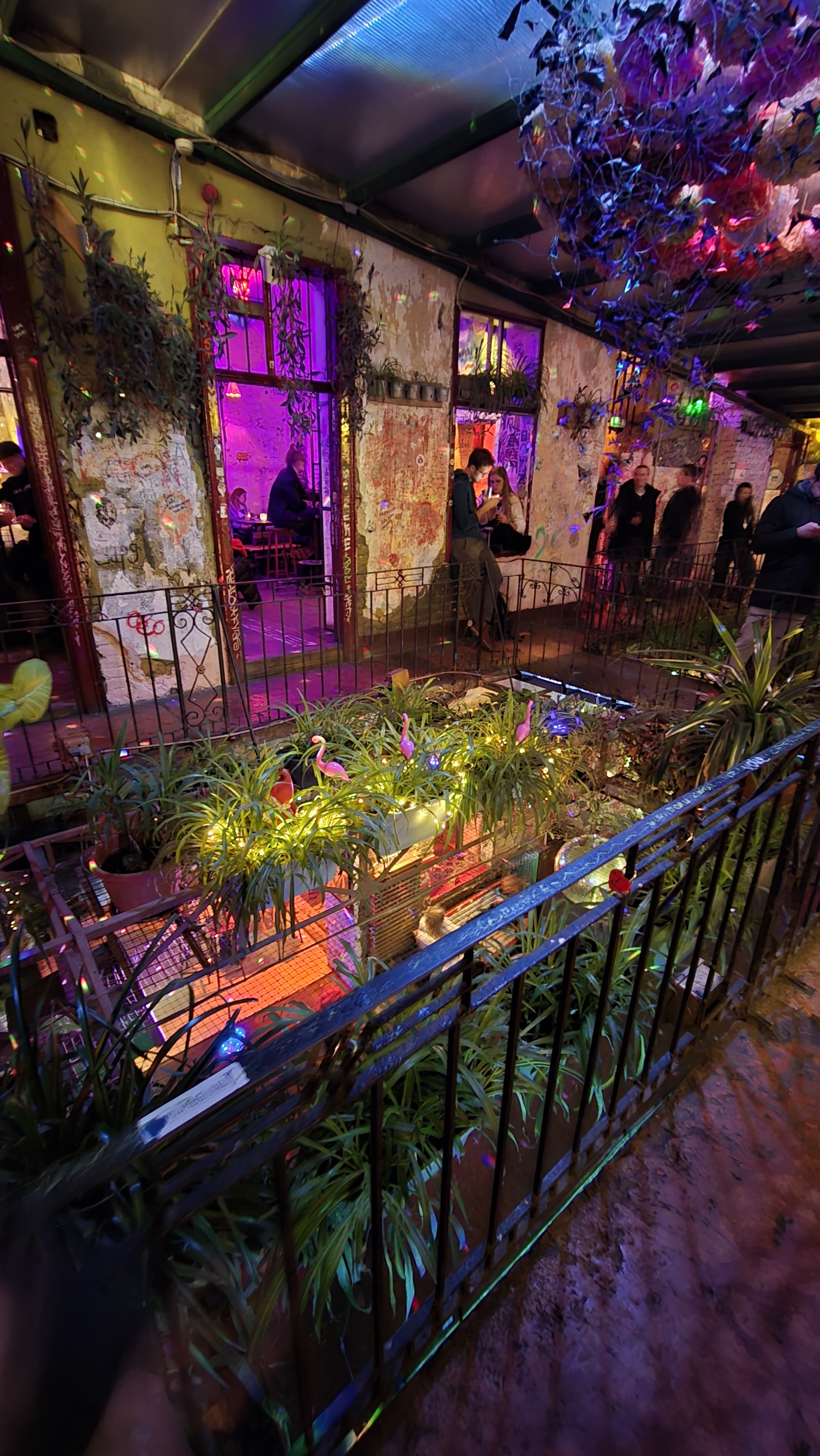 Después de comer, nos fuimos a Szimpla kert, los bares en ruinas o ruins bars mas famosos de Budapest. Son bares que antes eran edificios abandonados y ahora son parte integral de la vida nocturna, se encuentran en el barrio judío, se ofrece un ambiente relajado para disfrutar de bebidas, comidas y baile. Se han convertido en una importante atracción turística en la ciudad.