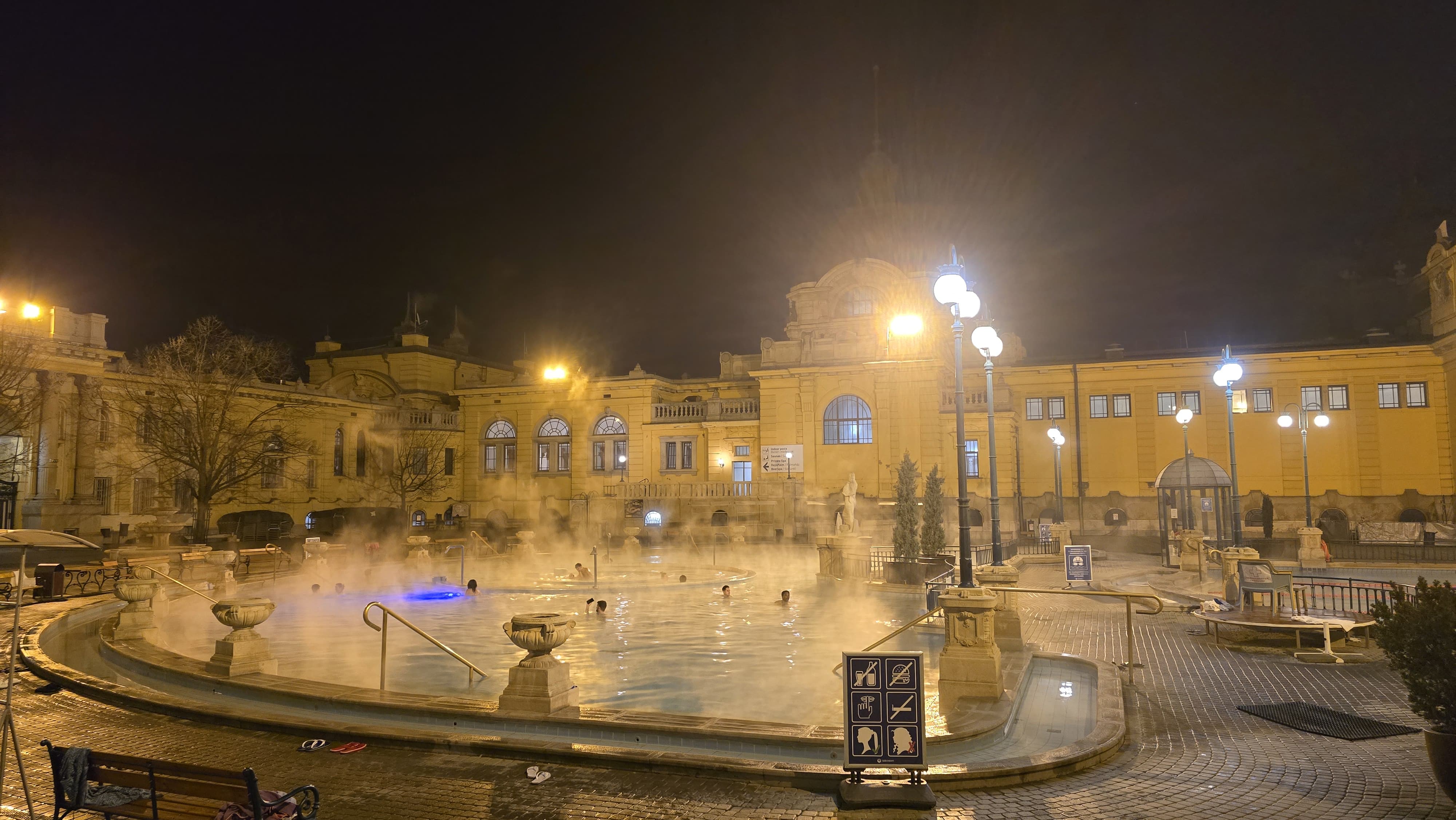 Después de un paseo ya pusimos rumbo a los baños termales, entramos y allí directamente sacamos las entradas con taquilla incluida, nos costó unos 11000 florines que al cambio son unos 54€ la pareja. Nos dieron una pulsera para poder abrir la taquilla y meter tus pertenencias, fuimos cada uno a nuestros vestuarios, nos desvestimos, cogimos la toalla y las chanclas que son obligatorias y salimos a la parte exterior a darnos un baño relajante. Fuera había 3 piscinas, el agua estaba a unos 27º o 30º, notamos bastante el cambio de temperatura ya que en el exterior estábamos a 1º. Fuimos cambiándonos de piscina y quisimos ver lo que había dentro, hay sauna, spa de cerveza y muchas piscinas más donde poder relajarte en tu viaje. Después de un par de horas en los baños, nos duchamos, nos cambiamos de ropa en los vestuarios y salimos más renovados.