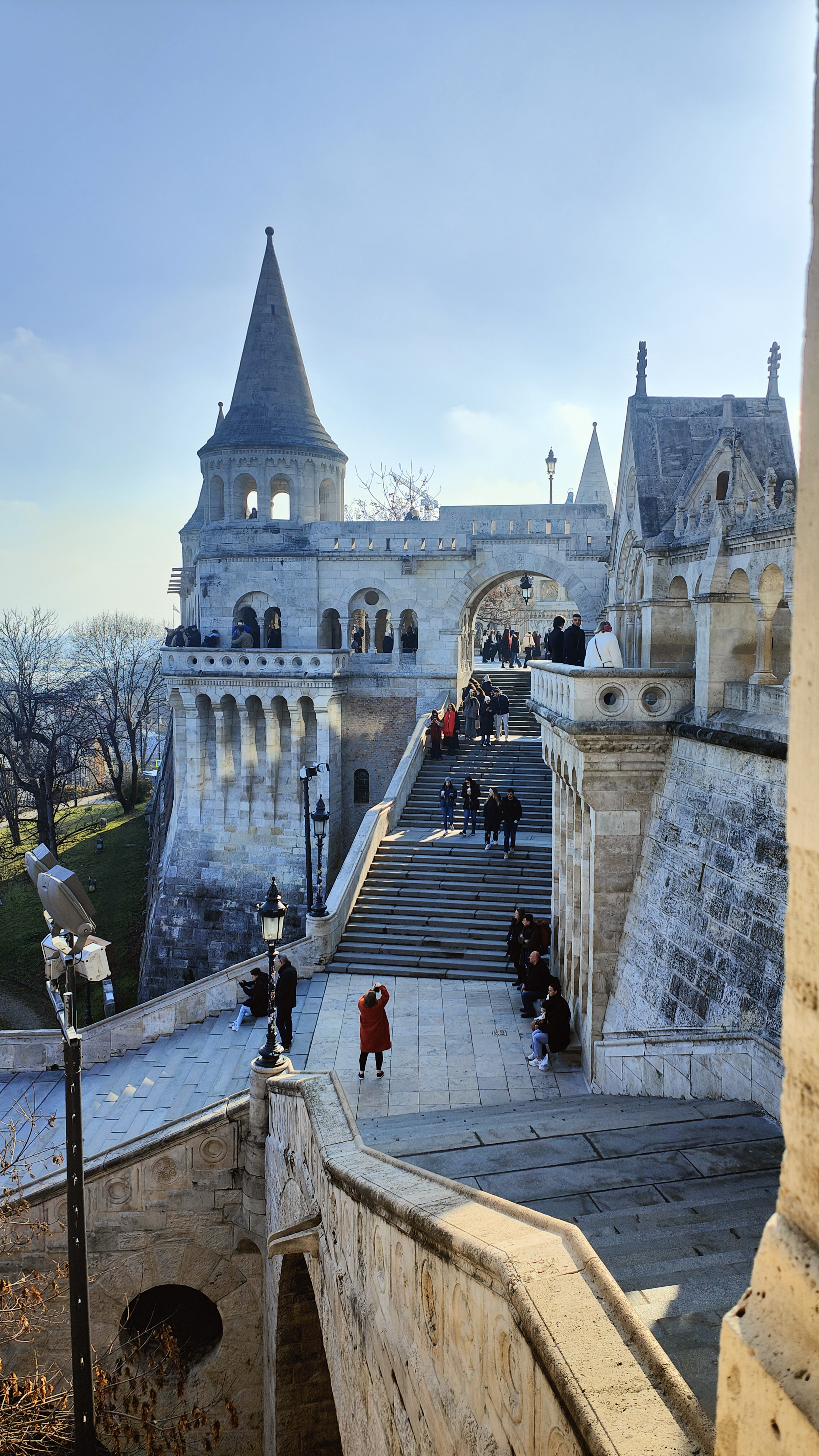 Llegamos a la plaza de la Santísima Trinidad donde pudimos ver con la luz del sol la iglesia de Matías de nuevo, el bastión de los pescadores y el barrio del castillo.