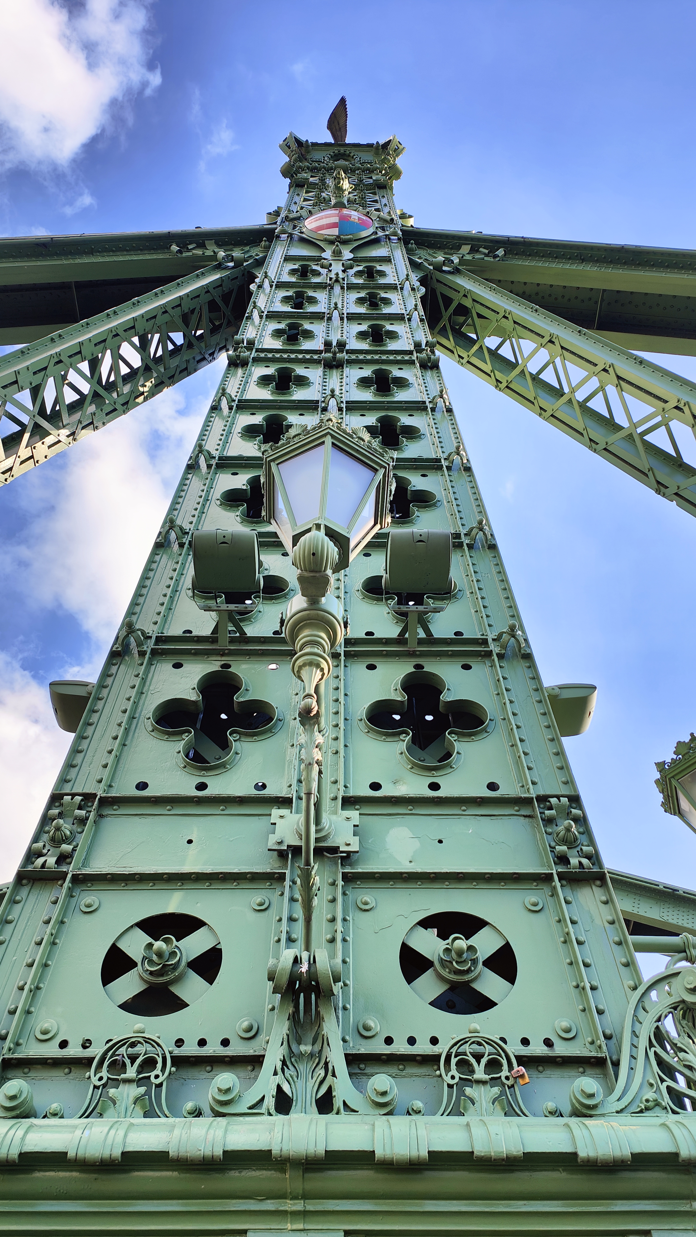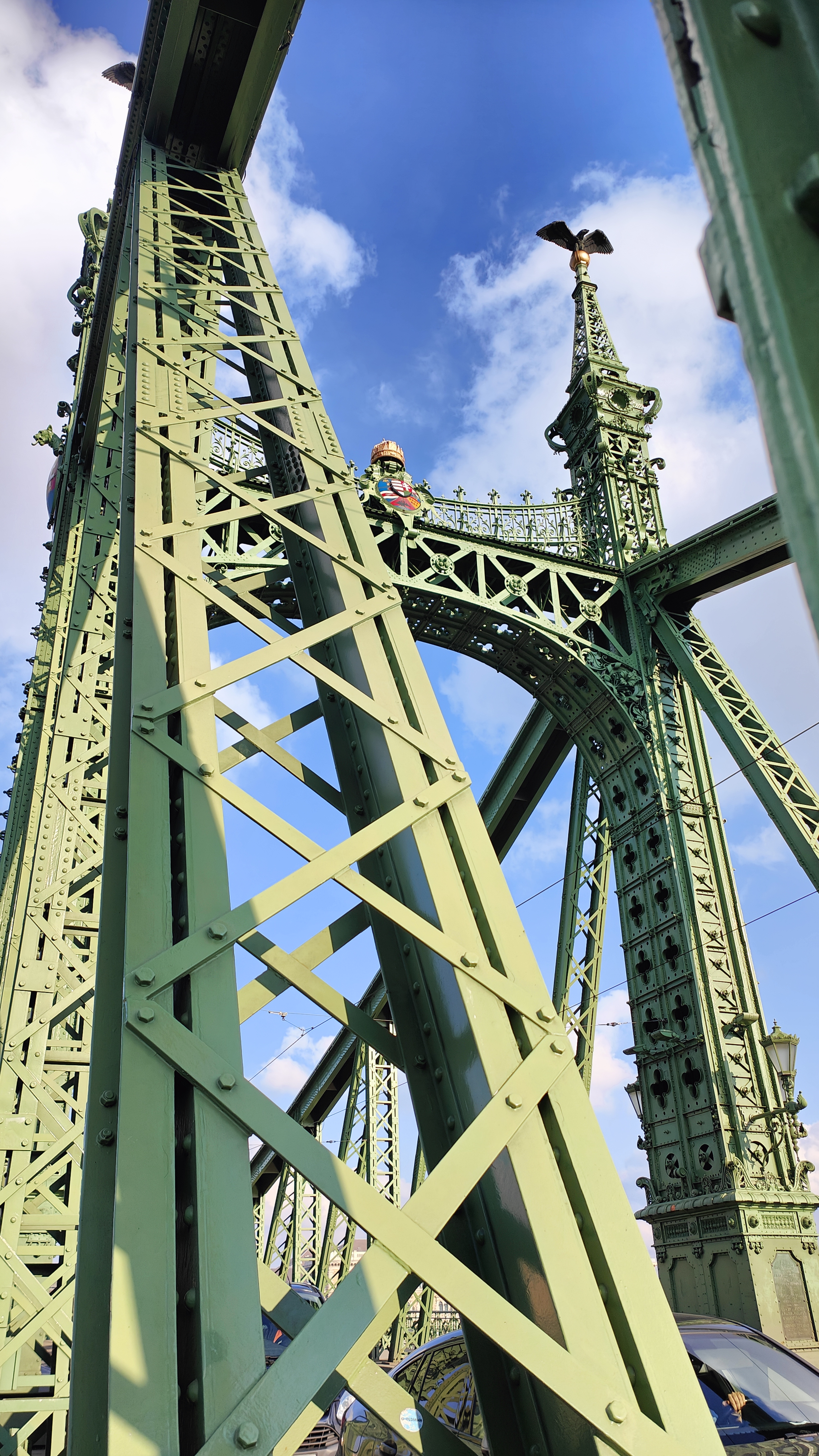 El puente de la libertad se inauguró en 1896 con el nombre de puente de Fco José en honor al emperador, que asistió a su inauguración. En los extremos se encuentran en la orilla de Buda la colina Gellert y en la orilla de Pest se encuentra el mercado central. El puente tiene 333.6 metros de largo y 20.1 metros de ancho, los mastiles se encuentran decorados en la parte superior con estatuas de bronce de Turul, tiene tambien escudos de armas incrustados. En la segunda guerra mundial el puente fue destruido y su ultima reconstrucción fue en 2007. En este puente también hay escondida una mini figurita ¿la podrás encontrar?.