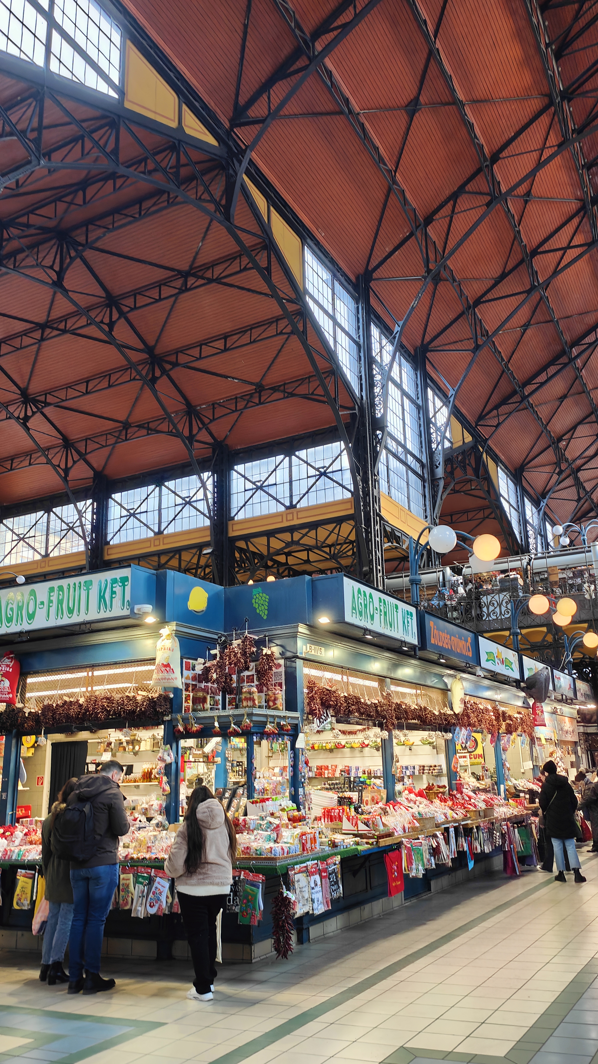 Al cruzar a la zona de Pest y estar tan cerca del mercado central, también entramos dentro para verlo y comprar algún recuerdo. El mercado central es conocido como el gran salón del mercado de Budapest, es la plaza cubierta mas grande de Hungría. El mercado comenzó a ser construido a finales de S. XIX en el año 1894. Se inauguró en 1897, 3 años después. Visitar este mercado es una de las mejores maneras de descubrir el mundo gastronómico de Budapest y en parte sus costumbres. Una mezcla de buena comida, vida cotidiana y joyas arquitectónicas las encuentras en este mercado. En la planta baja hay puestos de venta de comida, verduras, carne, embutidos y sobre todo paprika, el pimentón dulce o picante originario de Hungría, también hay puestos de pescado, especialmente ahumado. En la planta superior podemos encontrar tiendas de souvenirs, vinos, objetos de porcelana, manteles o vestidos tradicionales. También está la feria de comida con comidas típicas de la ciudad, donde podrás tomar allí desde cervezas tradicionales húngaras o las especialidades de chorizo y salchichas. También hay dulces y snacks.