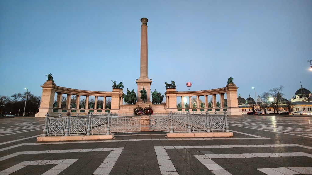 Decidimos ir a los baños termales Szechenyi, antes de llegar hicimos varias paradas, nos fuimos a la línea 1 de metro (la mas antigua de la ciudad y la mas bonita) y llegamos a la plaza de los Héroes. La plaza de los héroes es uno de los lugares mas importantes de la ciudad, esta situada cerca de la avenida Andrassy y cerca del parque de la ciudad, la plaza tiene estatuas representativas de los fundadores de la nación magiar más de 1100 años atrás. Esta rodeada por dos importantes edificios, el museo de bellas artes y el palacio del arte.